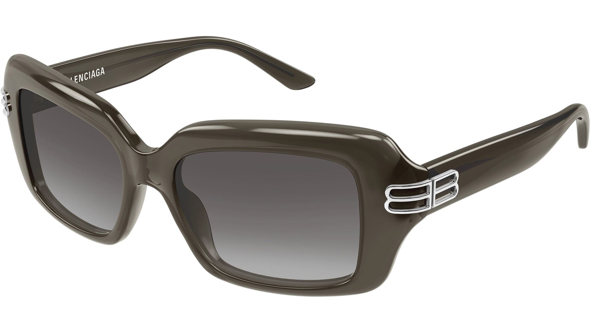Occhiali da sole Balenciaga BB0465S 004 donna con montatura rettangolare in acetato riciclato marrone scuro opale lucido e lenti grigio sfumato a grigio scuro doppia sfumatura. Linea: Everyday. Codice modello: BB0465S. Codice colore: 004. Made in Japan. Rivenditore autorizzato Balenciaga online. Gli occhiali vengono consegnati con custodia e accessori originali e sono coperti dalla garanzia ufficiale di 12 mesi del produttore.
