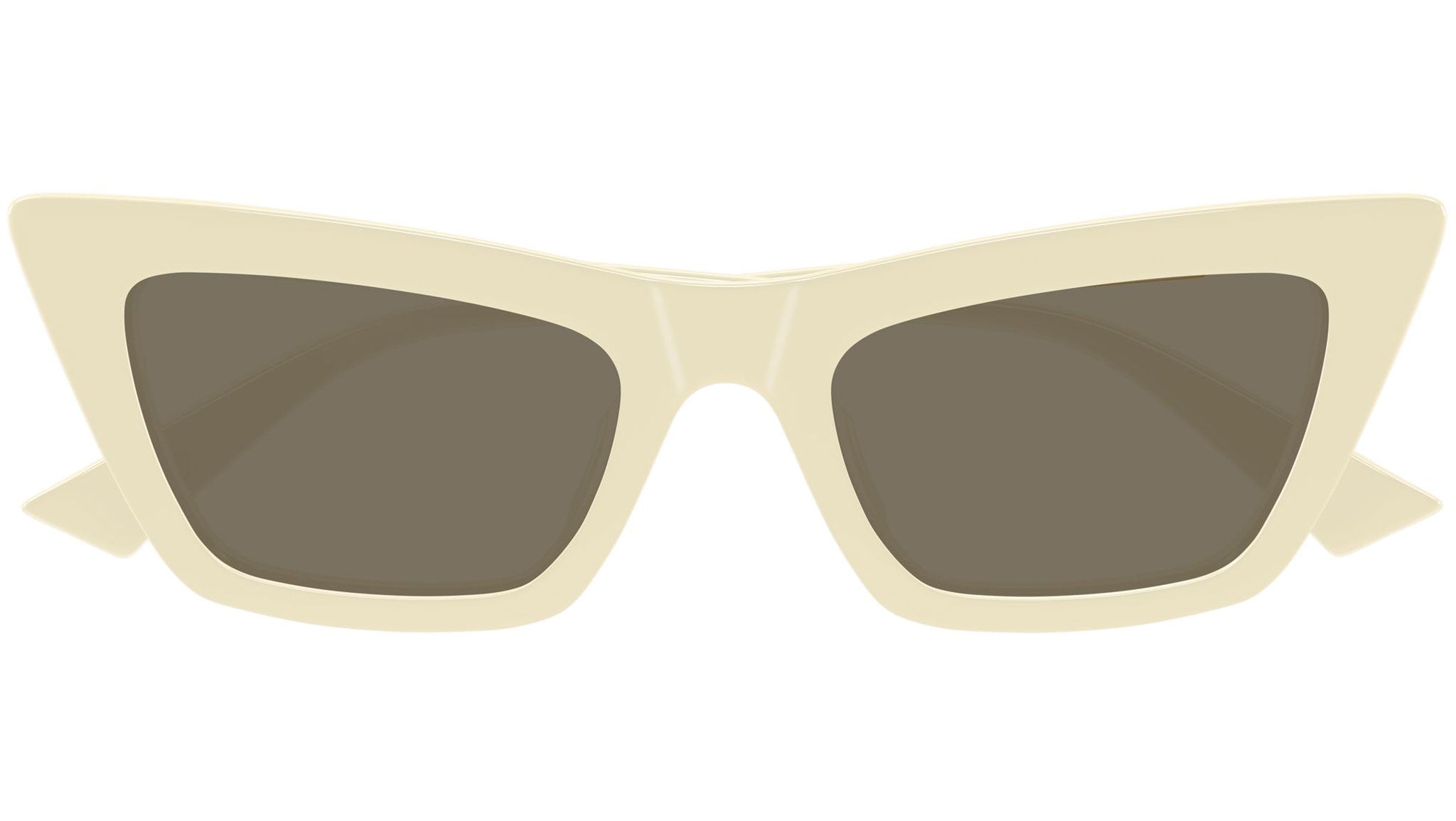 Occhiali da sole Bottega Veneta BV1446S 004 donna con montatura cat eye in acetato riciclato avorio burro solido lucido e lenti marrone tinta unita. Linea: Ribbon. Codice modello: BV1446S. Codice colore: 004. Made in Italy. Rivenditore autorizzato Bottega Veneta online. Gli occhiali vengono consegnati con custodia e accessori originali e sono coperti dalla garanzia ufficiale di 12 mesi del produttore.