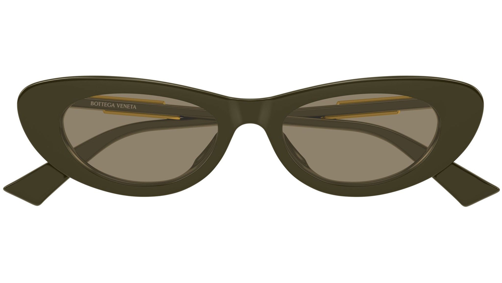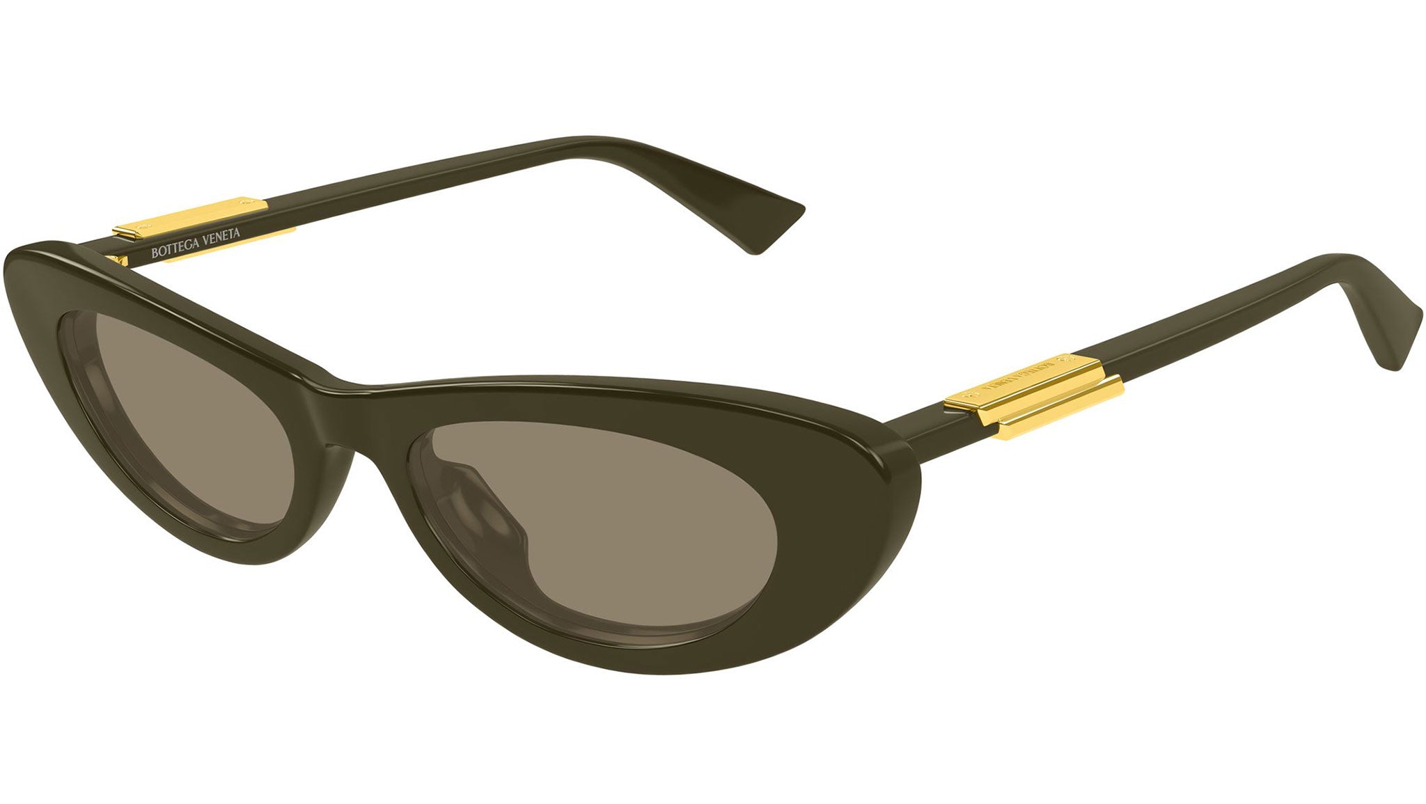 Occhiali da sole Bottega Veneta BV1447S 005 donna con montatura cat eye in acetato riciclato verde scuro tinta unita lucido e lenti tabacco chiaro solido. Linea: Ribbon. Codice modello: BV1447S. Codice colore: 005. Made in Italy. Rivenditore autorizzato Bottega Veneta online. Gli occhiali vengono consegnati con custodia e accessori originali e sono coperti dalla garanzia ufficiale di 12 mesi del produttore.