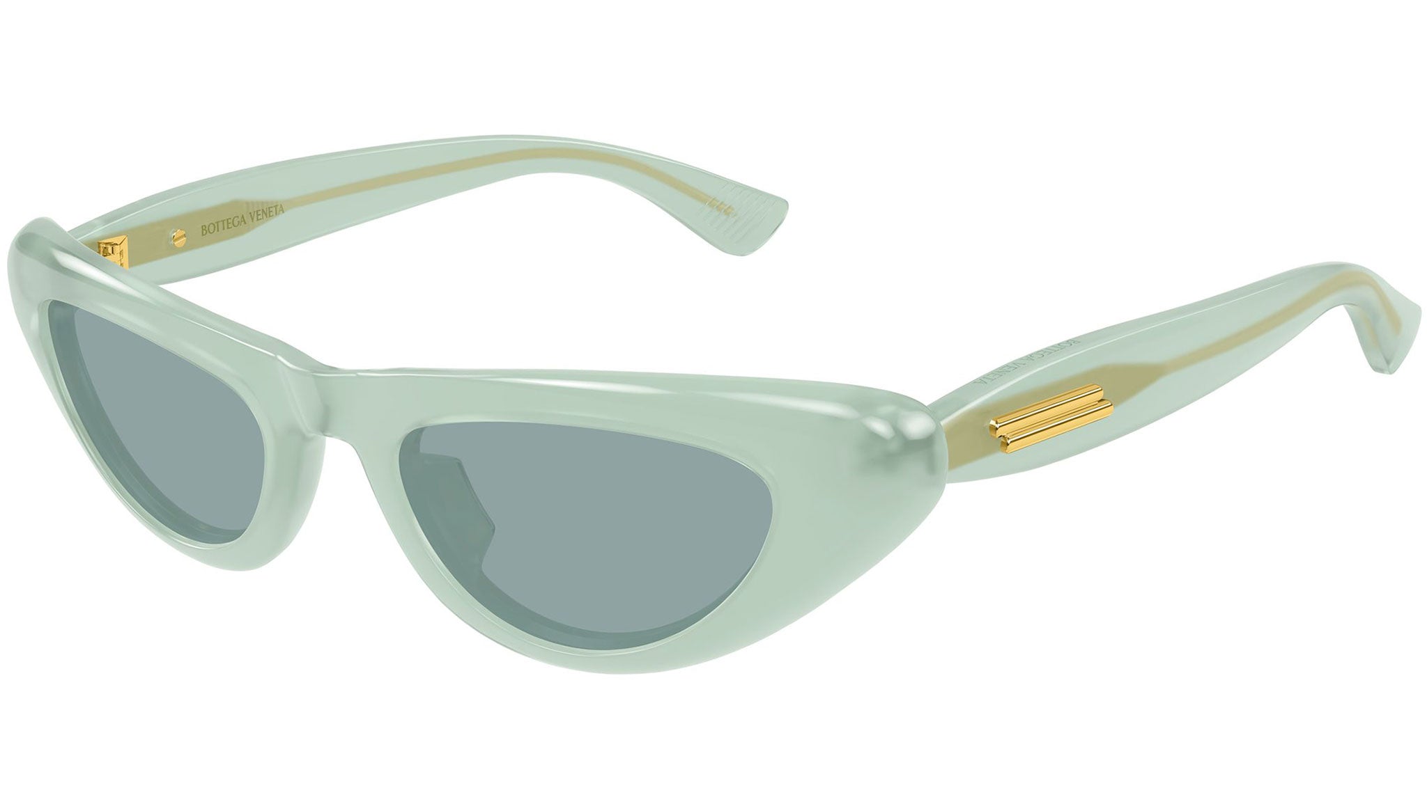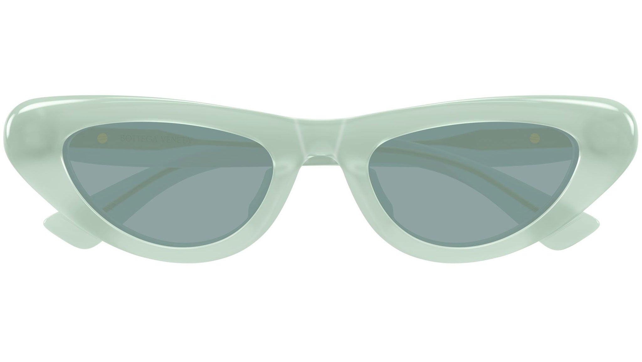 Occhiali da sole Bottega Veneta BV1450S 003 donna con montatura cat eye in acetato riciclato menta intenso opale lucido e lenti verde chiaro tinta unita. Linea: Signature Icons. Codice modello: BV1450S. Codice colore: 003. Made in Italy. Rivenditore autorizzato Bottega Veneta online. Gli occhiali vengono consegnati con custodia e accessori originali e sono coperti dalla garanzia ufficiale di 12 mesi del produttore.