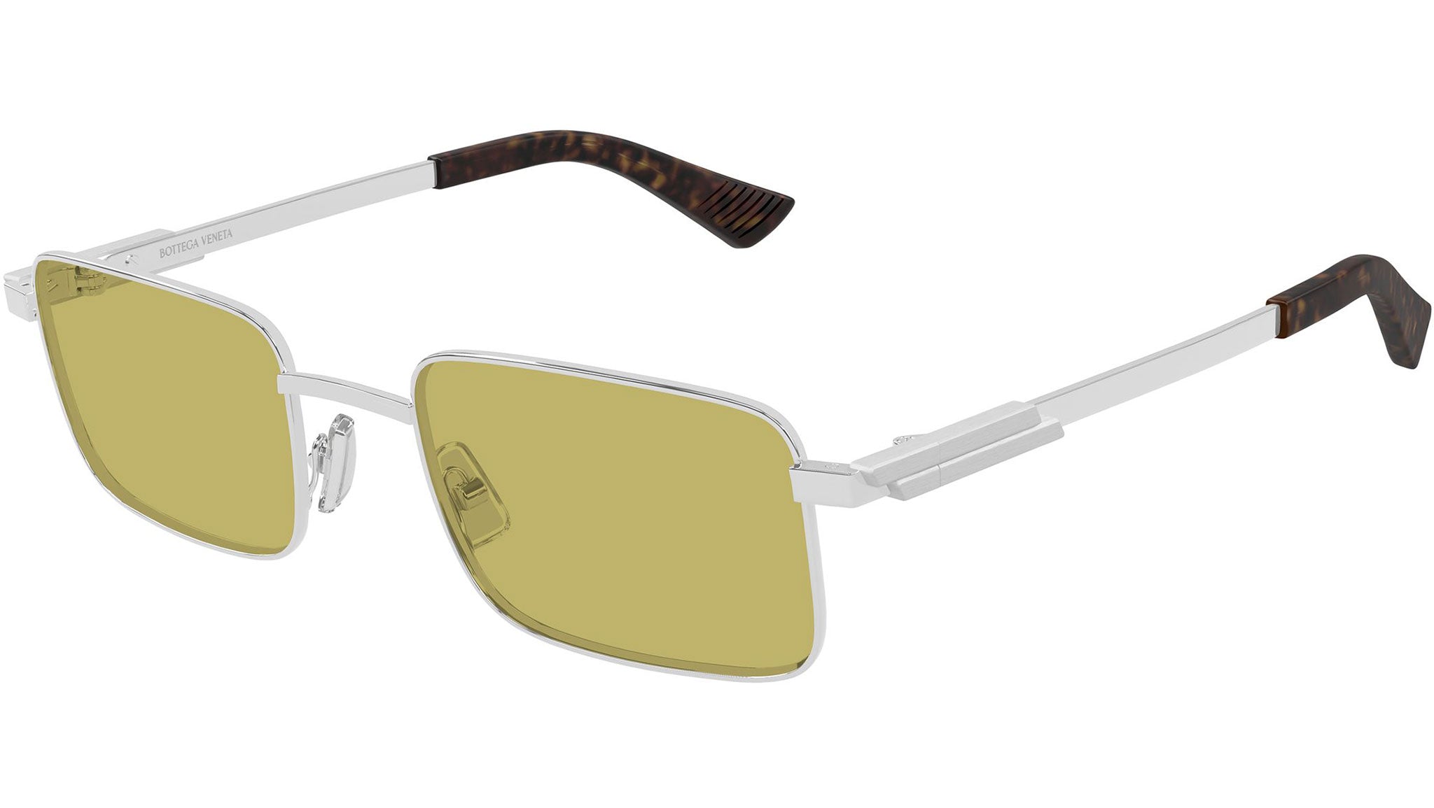 Occhiali da sole Bottega Veneta BV1469S 003 unisex con montatura rettangolare in metallo argento lucido e lenti beige nicotina tinta unita. Linea: Ribbon. Codice modello: BV1469S. Codice colore: 003. Made in Italy. Rivenditore autorizzato Bottega Veneta online. Gli occhiali vengono consegnati con custodia e accessori originali e sono coperti dalla garanzia ufficiale di 12 mesi del produttore.