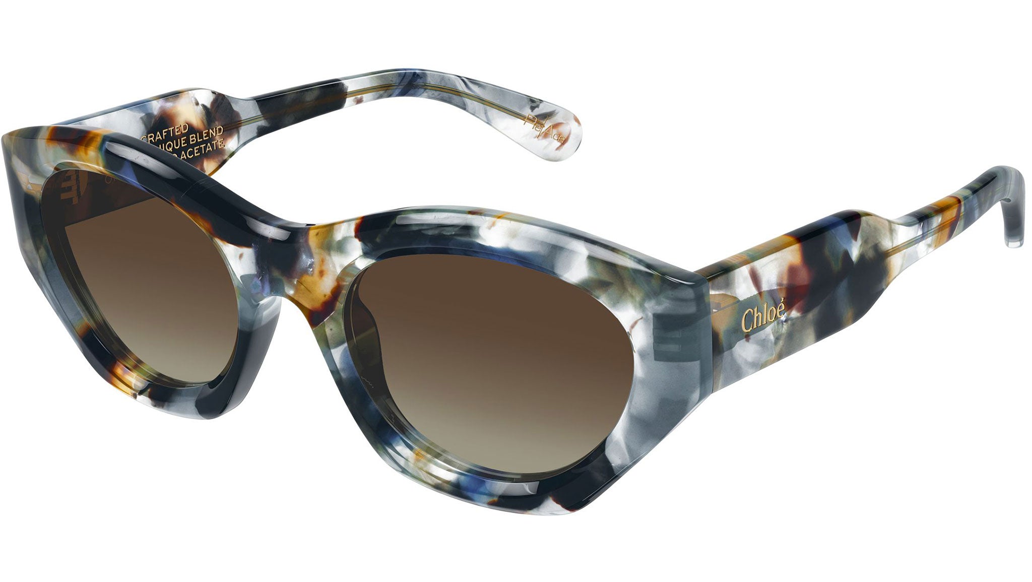 Occhiali da sole Chloé CH0220S 017 donna con montatura cat eye in acetato riciclato blu cosmic e lenti doppia sfumatura marrone / fango. Linea: Chloé. Codice modello: CH0220S. Codice colore: 017. Made in Italy. Rivenditore autorizzato Chloé Eyewear online. Gli occhiali vengono consegnati con custodia e accessori originali e sono coperti dalla garanzia ufficiale di 12 mesi del produttore.