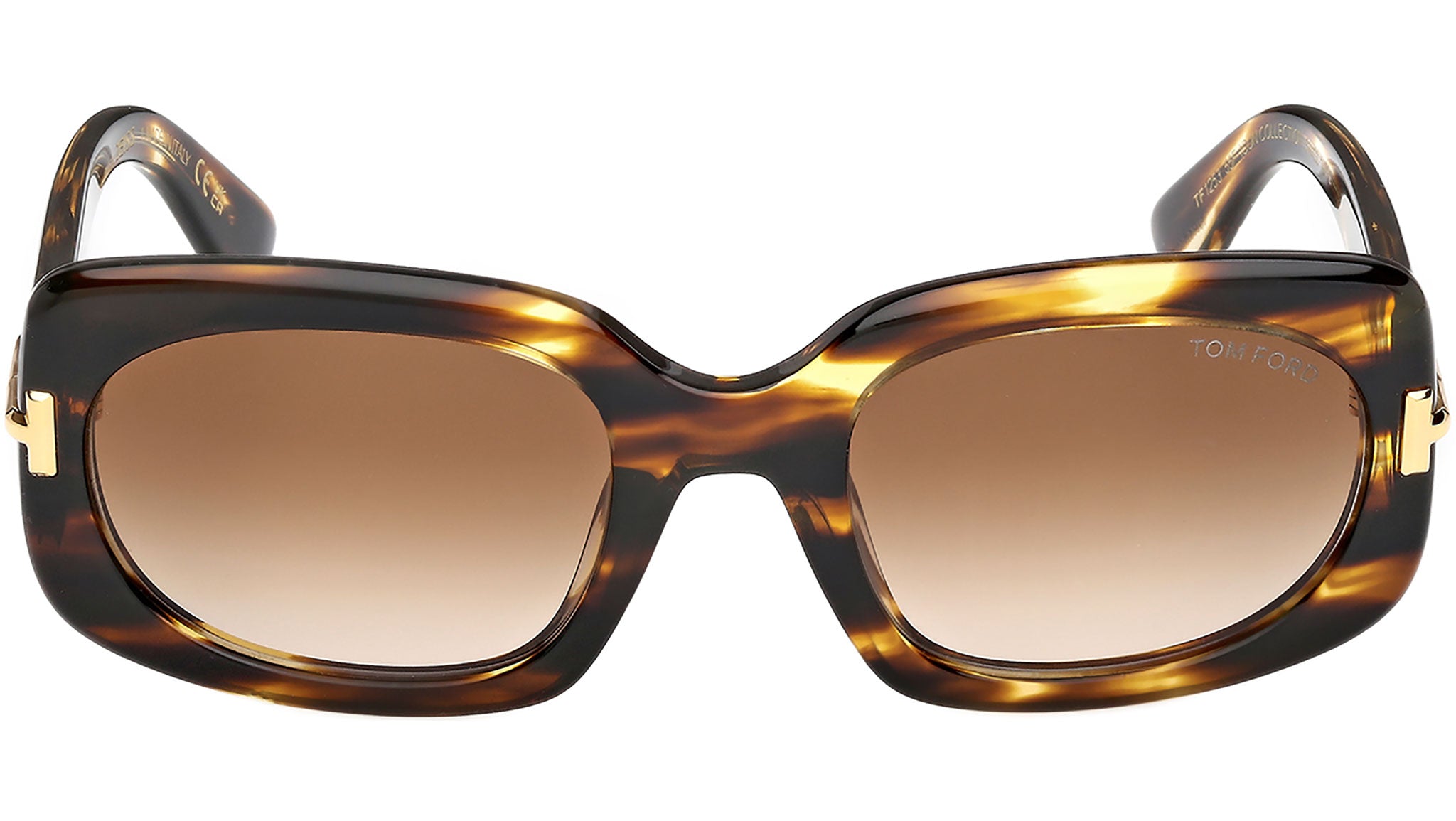 Occhiali da sole Tom Ford donna modello Icon FT1253 con montatura rettangolare full-rim in acetato avana colorato e lenti color marrone sfumato. Codice Brand: 1253. Codice colore: 55F. Rivenditore autorizzato Tom Ford online. Gli occhiali vengono consegnati con custodia e accessori originali e sono coperti da garanzia standard di 12 mesi del produttore.