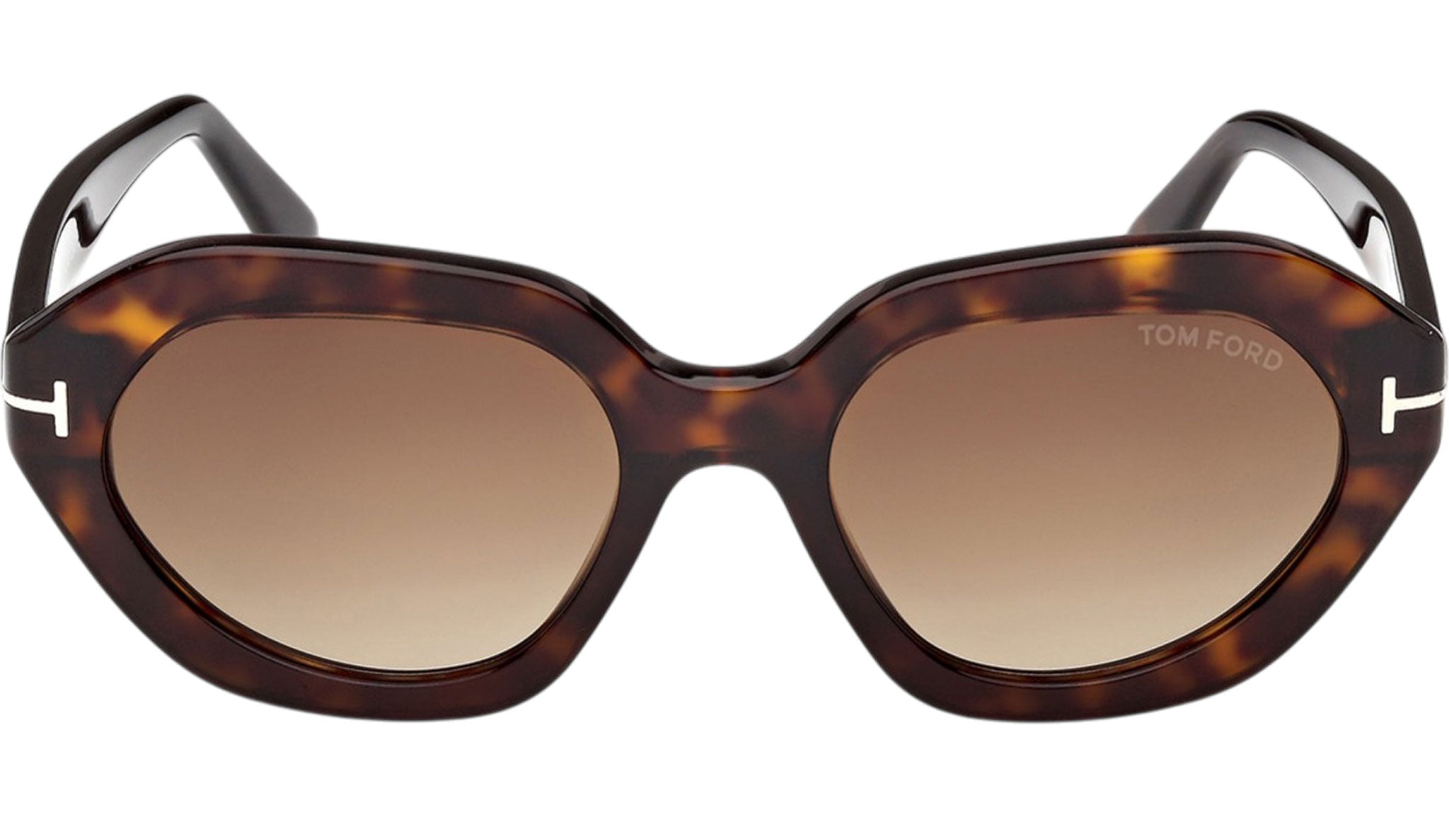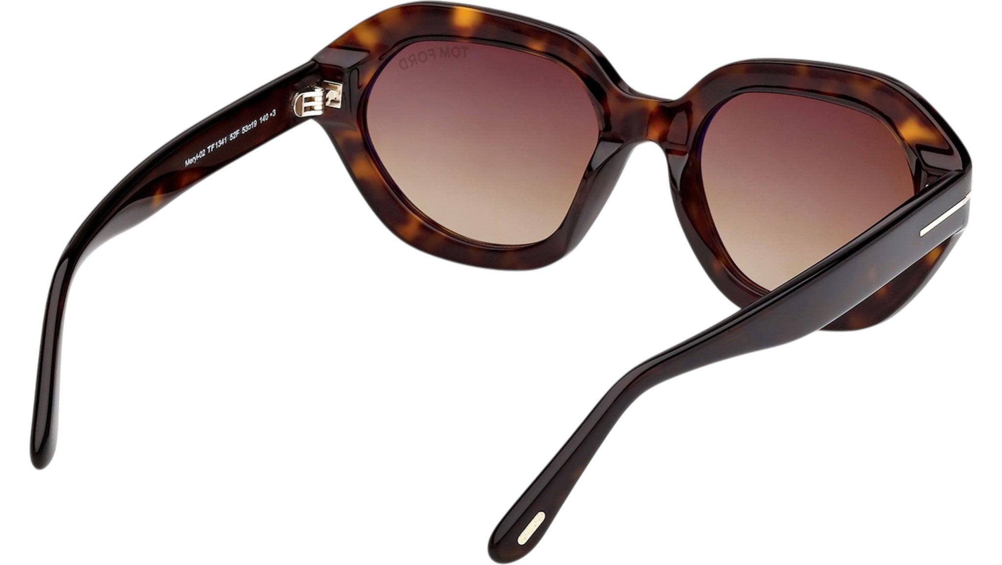 Occhiali da sole Tom Ford donna modello Meryl-02 FT1341 con montatura geometrica full-rim in acetato avana scuro e lenti color marrone sfumato. Codice Brand: 1341. Codice colore: 52F. Rivenditore autorizzato Tom Ford online. Gli occhiali vengono consegnati con custodia e accessori originali e sono coperti da garanzia standard di 12 mesi del produttore.