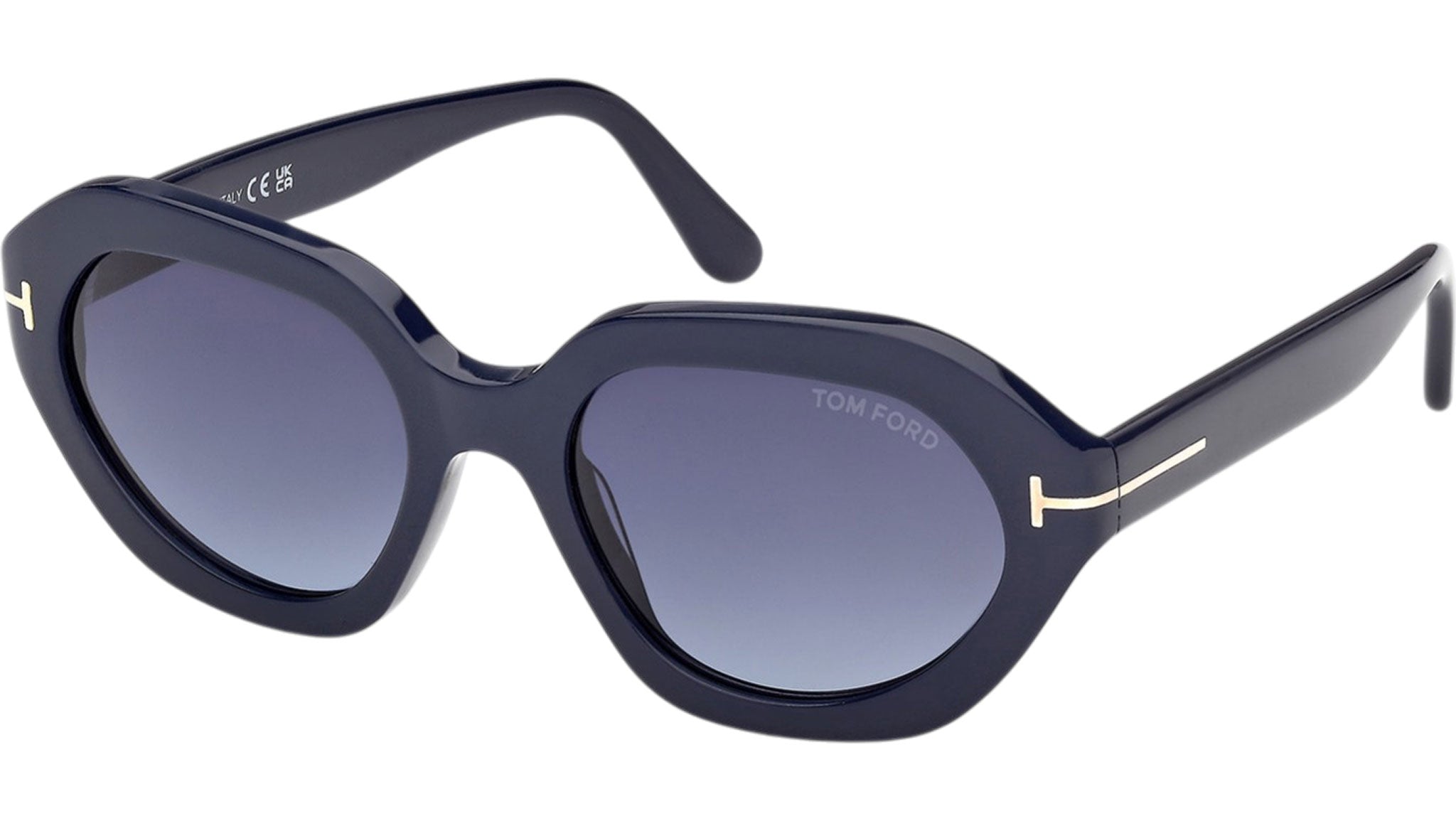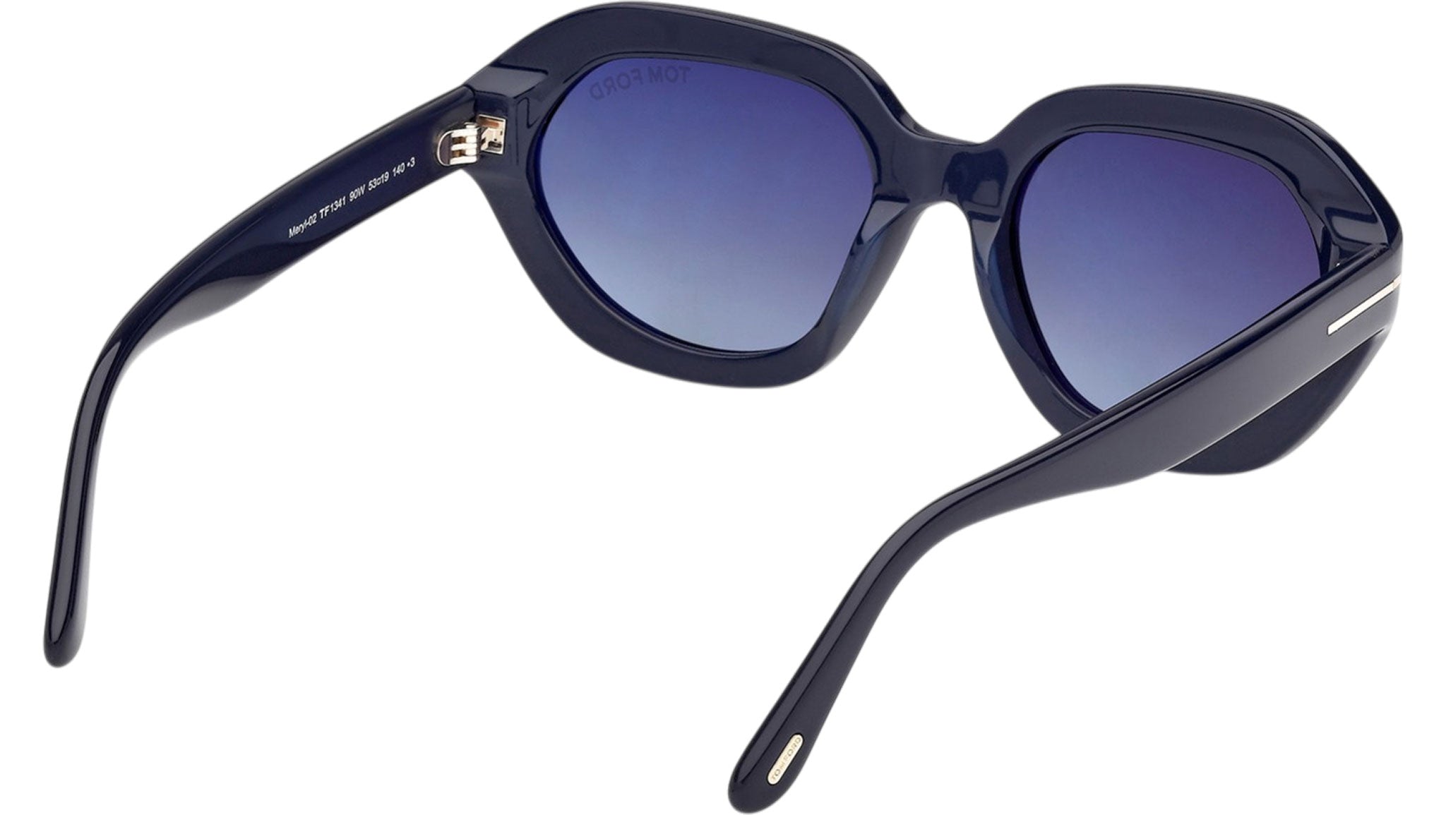 Occhiali da sole Tom Ford donna modello Meryl-02 FT1341 con montatura geometrica full-rim in acetato blu lucido e lenti color blu sfumato. Codice Brand: 1341. Codice colore: 90W. Rivenditore autorizzato Tom Ford online. Gli occhiali vengono consegnati con custodia e accessori originali e sono coperti da garanzia standard di 12 mesi del produttore.
