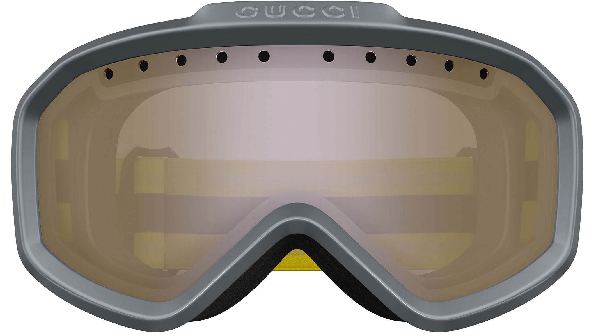 Occhiali da sole Gucci modello GG1210S linea Lettering in iniettato forma mascherina codice colore 007 rutenio scuro metallizzato lucido con aste giallo e lenti marrone solido + ml bronzo. Rivenditore autorizzato Gucci online. Gli occhiali vengono consegnati con custodia e accessori originali e sono coperti dalla garanzia ufficiale di 12 mesi del produttore.