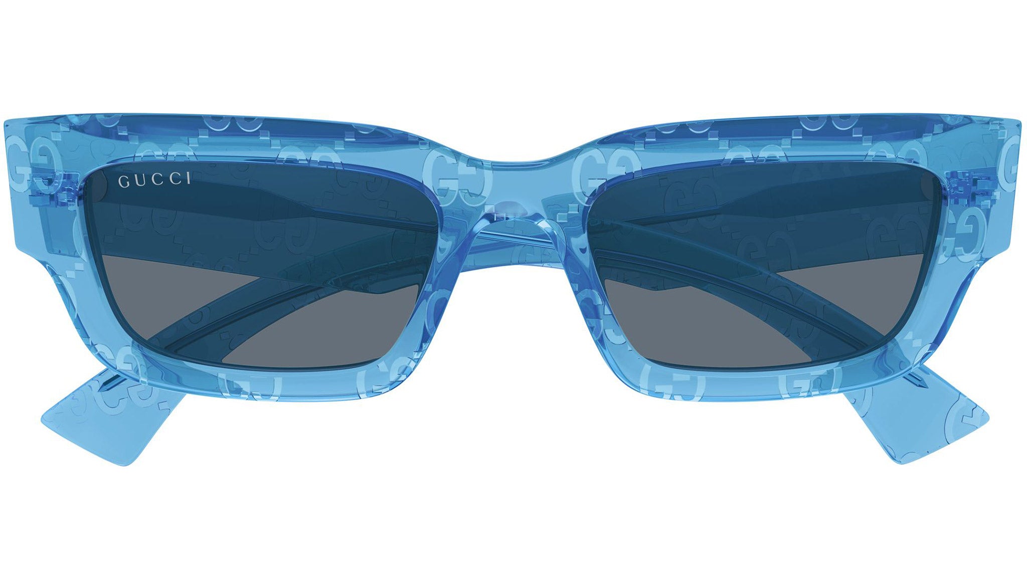 - Colore montatura azzurro trasparente lucido con motivo Gucci