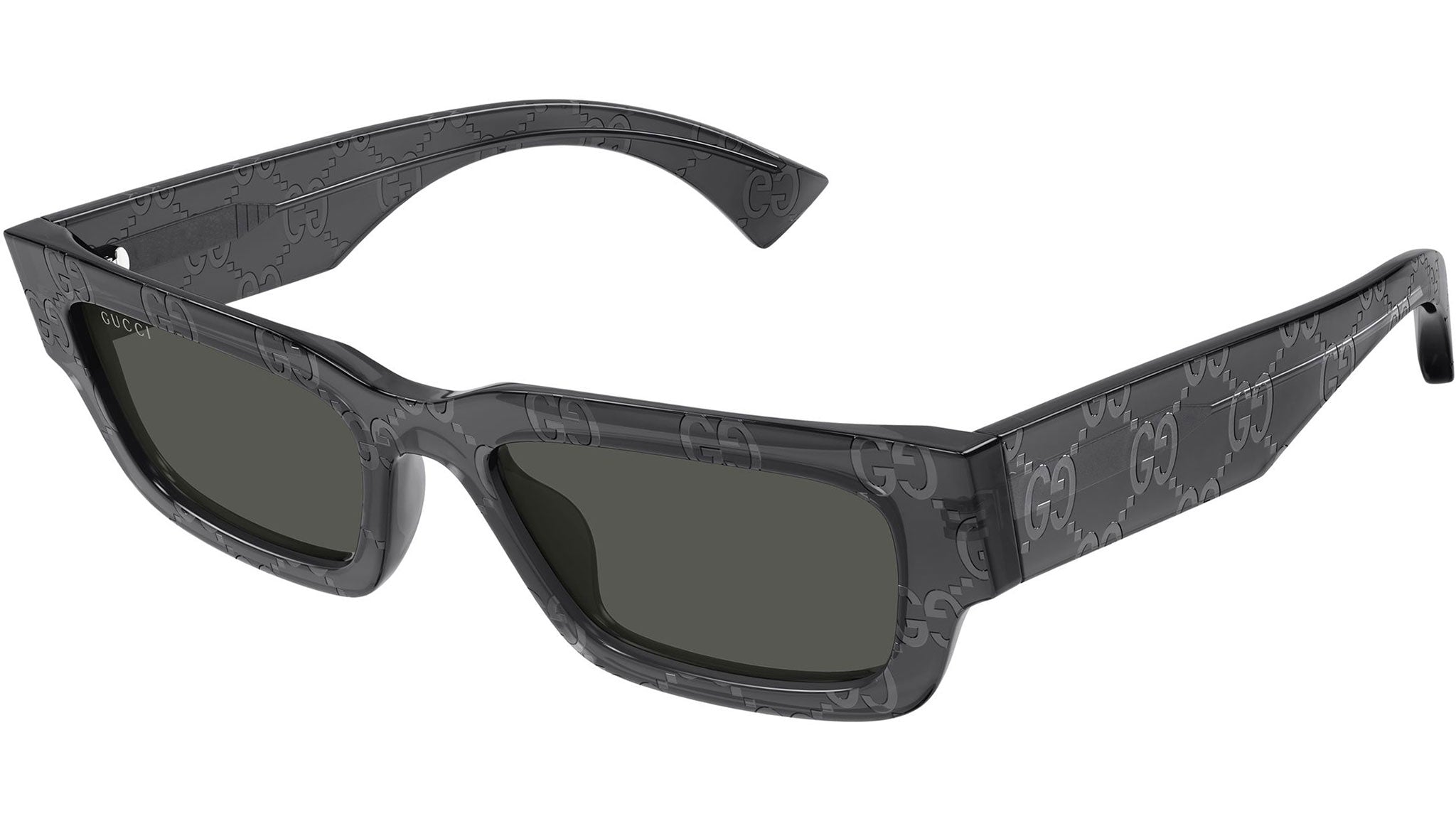 Occhiali da sole Gucci GG1838S 011 uomo con montatura rettangolare in acetato riciclato grigio scuro trasparente lucido con motivo Gucci e lenti grigio tinta unita in bio nylon. Linea: Name Of Brand. Codice modello: GG1838S. Codice colore: 011. Made in Italy. Rivenditore autorizzato Gucci online. Gli occhiali vengono consegnati con custodia e accessori originali e sono coperti dalla garanzia ufficiale di 12 mesi del produttore.