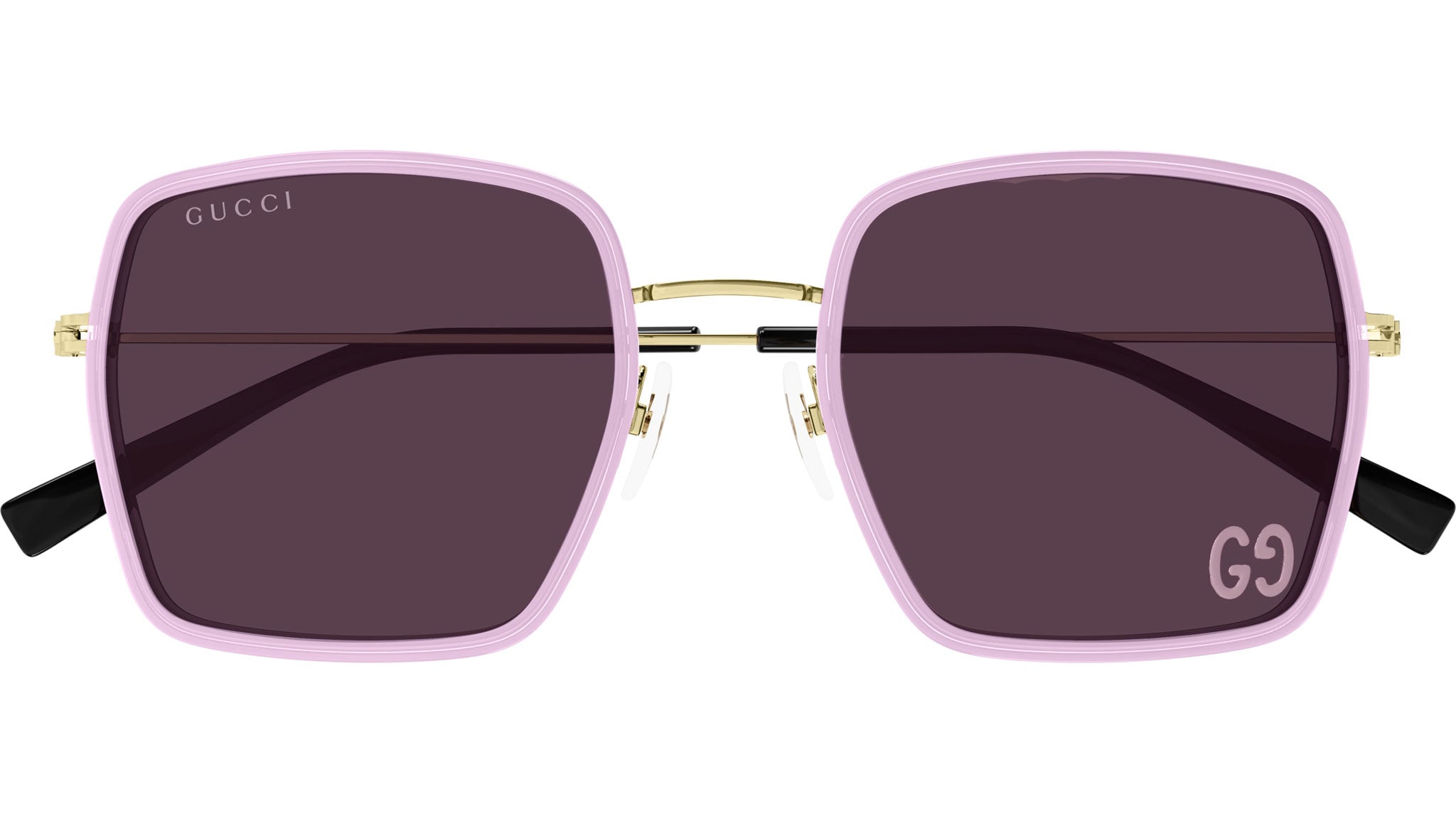 Occhiali da sole Gucci GG1848S 005 donna con montatura rettangolare in inietatto rosa chiaro e lenti viola tinta unita con logo GG komorebi. Linea: Web. Codice modello: GG1848S. Codice colore: 005. Made in Japan. Rivenditore autorizzato Gucci online. Gli occhiali vengono consegnati con custodia e accessori originali e sono coperti dalla garanzia ufficiale di 12 mesi del produttore.