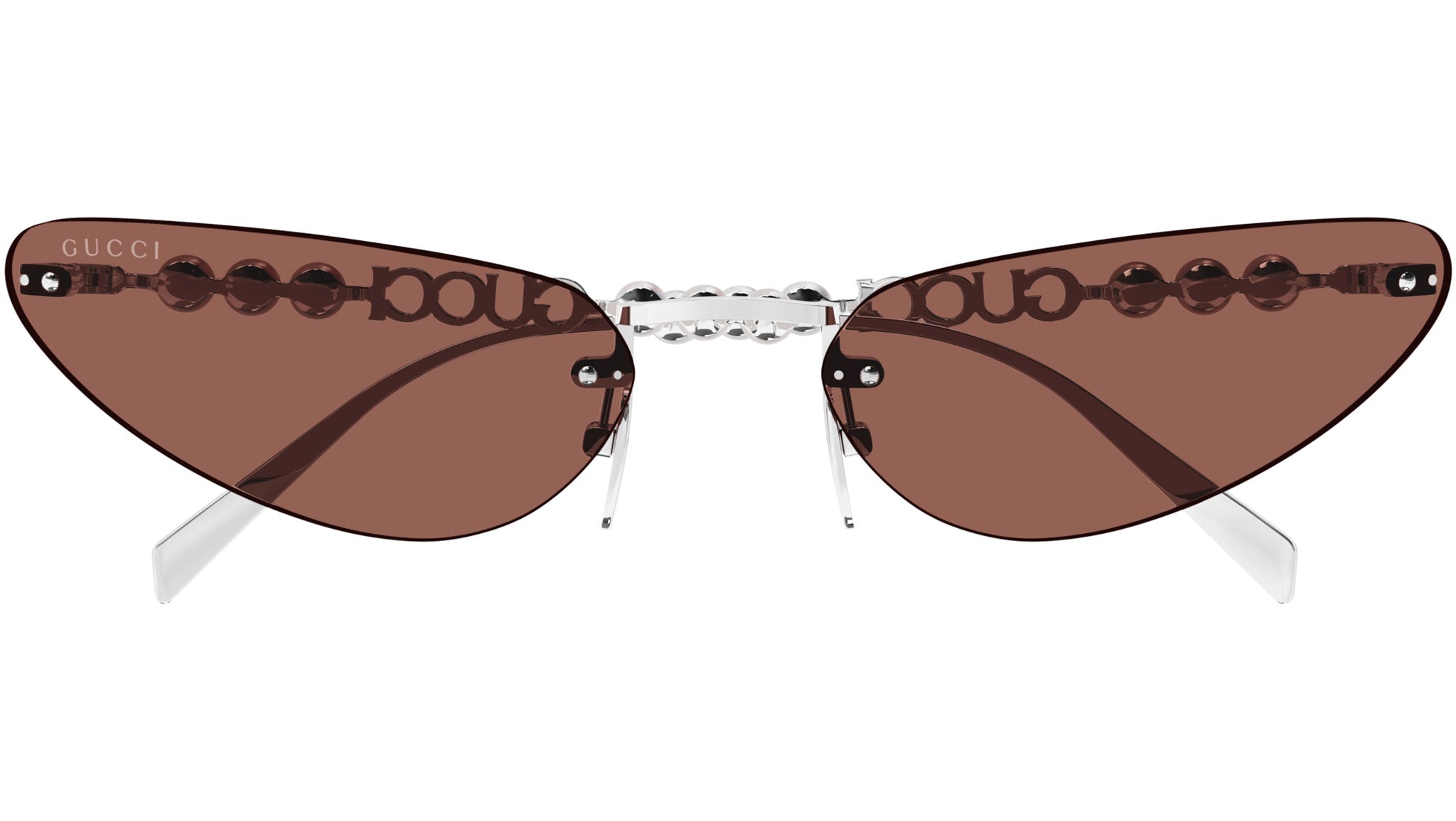 Occhiali da sole Gucci GG1920S 002 donna con montatura cat eye in metallo argento e lenti marrone caldo tinta unita. Linea: Eyewear. Codice modello: GG1920S. Codice colore: 002. Made in Japan. Rivenditore autorizzato Gucci online. Gli occhiali vengono consegnati con custodia e accessori originali e sono coperti dalla garanzia ufficiale di 12 mesi del produttore.