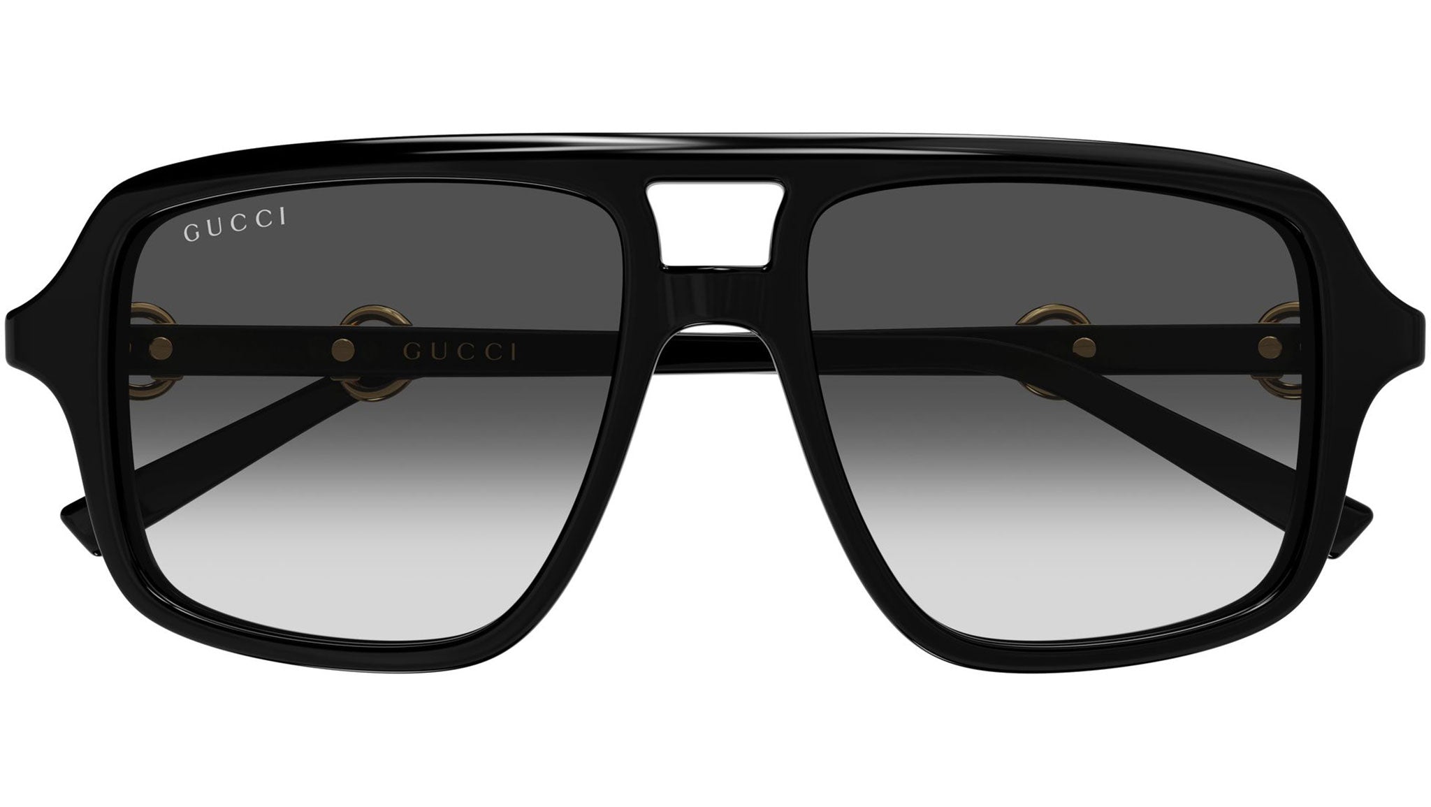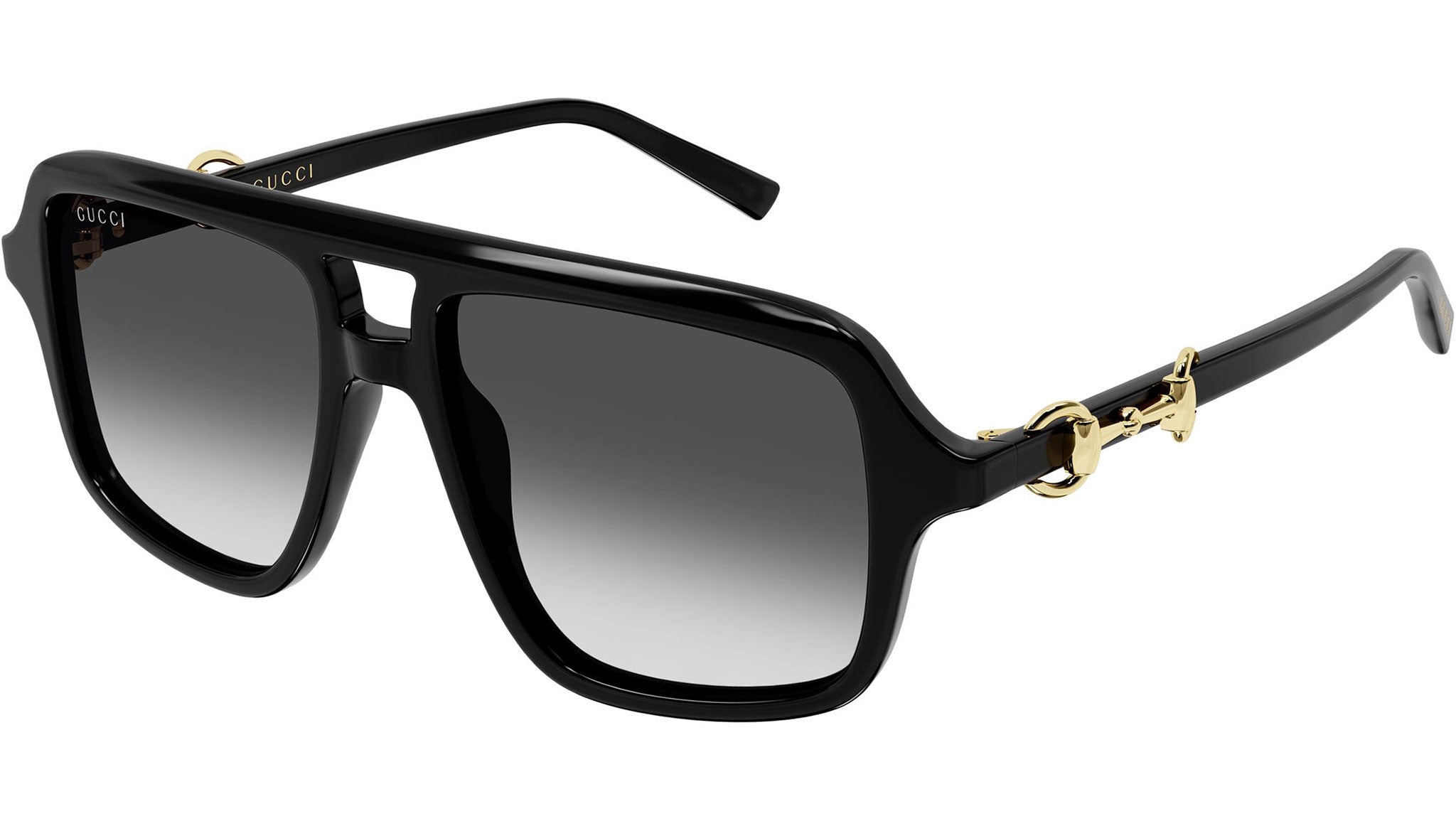 Occhiali da sole Gucci GG2052S donna con montatura aviatore in acetato riciclato nero lucido tinta unita e lenti grigio sfumato. Linea: Sign. Codice modello: GG2052S. Codice colore calibro 55: 007. Calibro 53: 005. Made in Japan. Rivenditore autorizzato Gucci online. Gli occhiali vengono consegnati con custodia e accessori originali e sono coperti dalla garanzia ufficiale di 12 mesi del produttore.