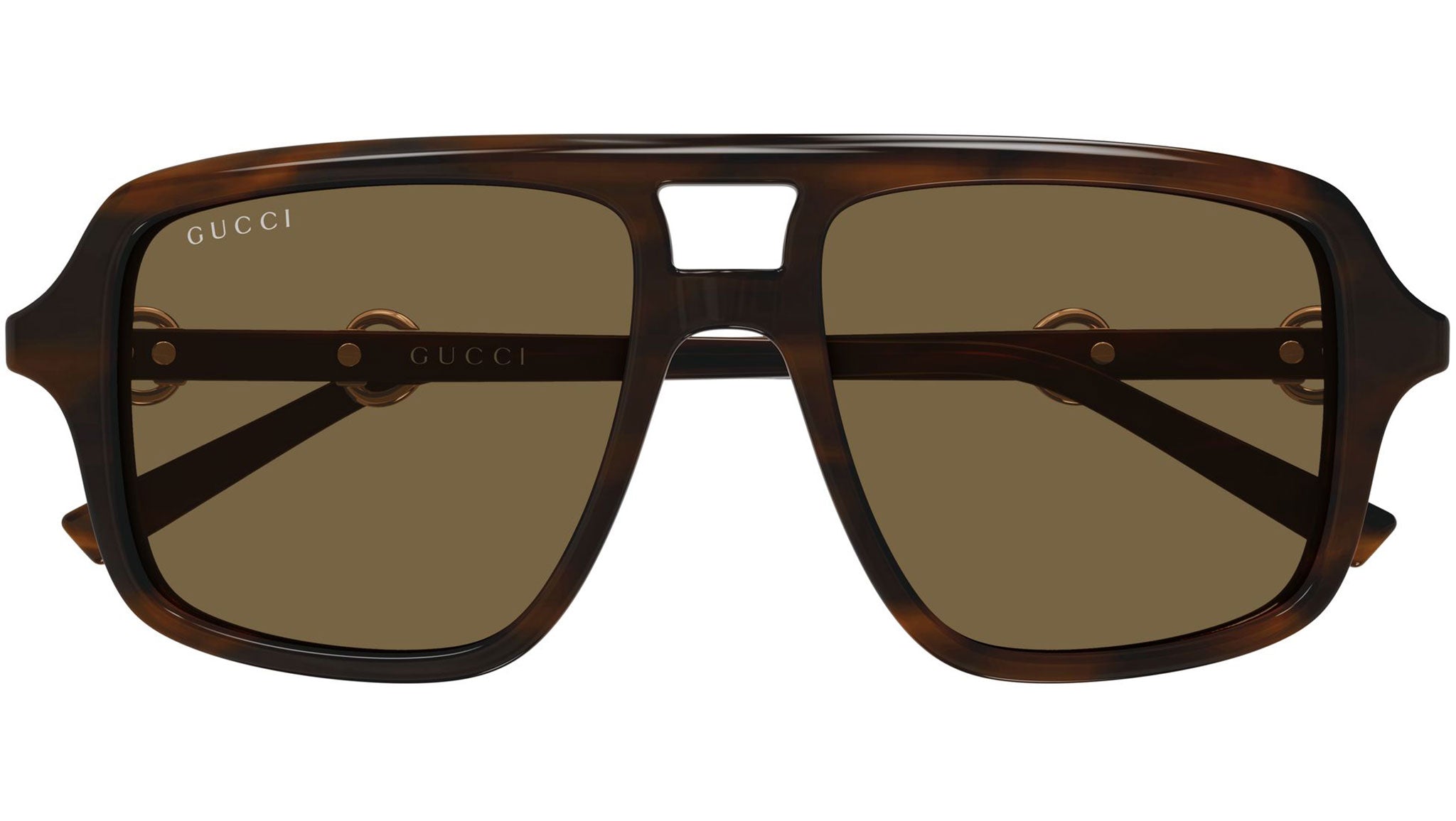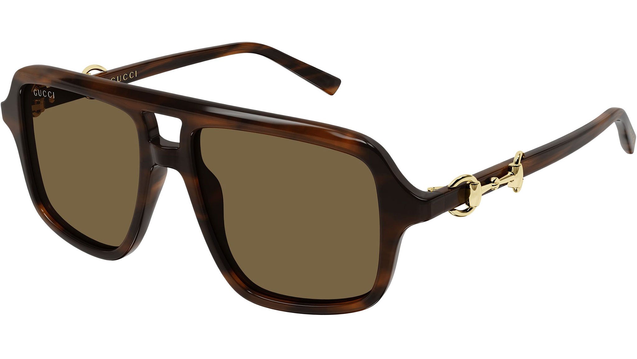 Occhiali da sole Gucci GG2052S donna con montatura aviatore in acetato riciclato avana marrone striato lucido e lenti marrone tinta unita. Linea: Sign. Codice modello: GG2052S. Codice colore calibro 55: 009. Calibro 53: 002. Made in Japan. Rivenditore autorizzato Gucci online. Gli occhiali vengono consegnati con custodia e accessori originali e sono coperti dalla garanzia ufficiale di 12 mesi del produttore.