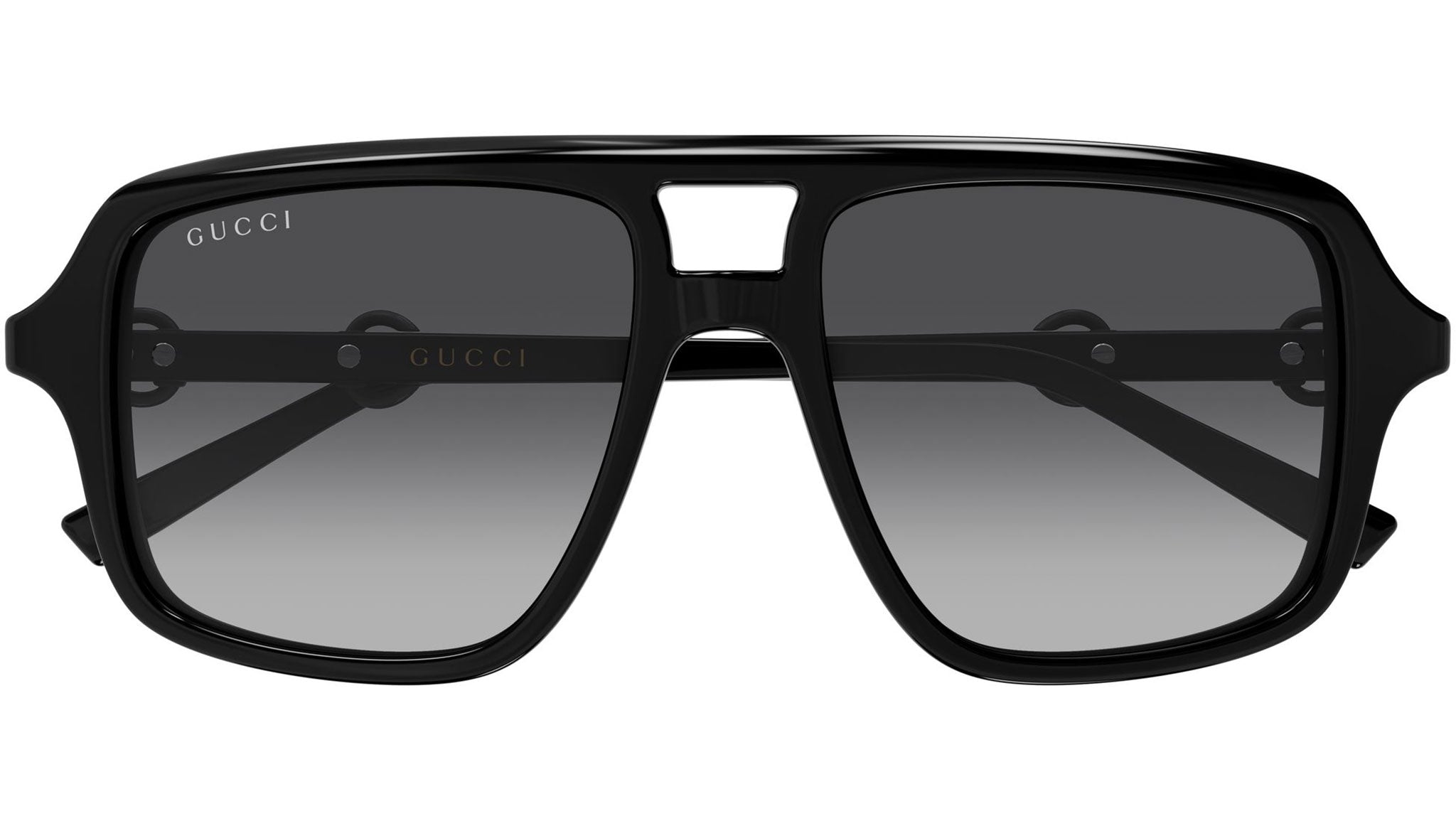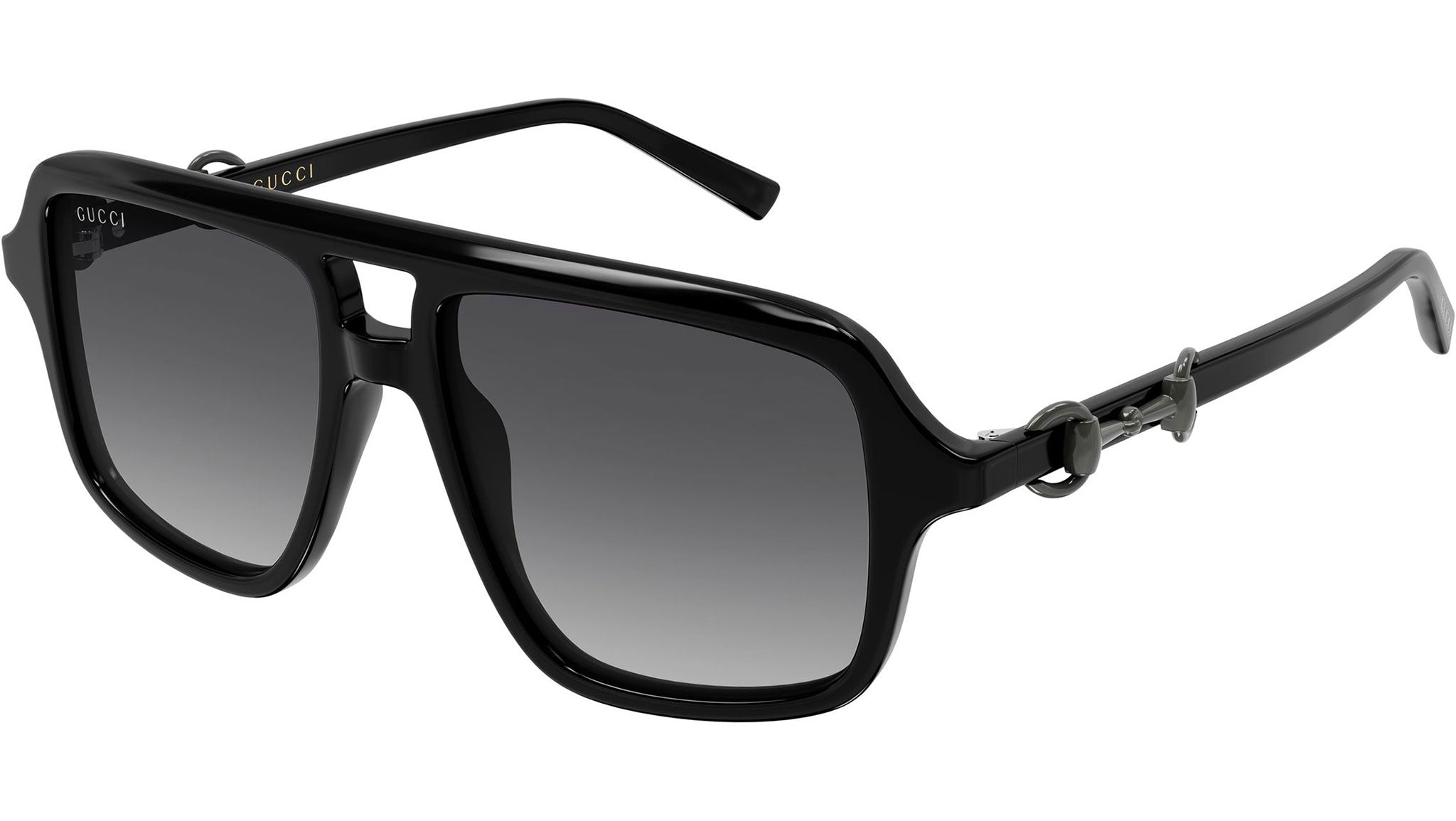 Occhiali da sole Gucci GG2052S donna con montatura aviatore in acetato riciclato nero lucido tinta unita e lenti grigio sfumato. Linea: Sign. Codice modello: GG2052S. Codice colore calibro 55: 011. Calibro 53: 003. Made in Japan. Rivenditore autorizzato Gucci online. Gli occhiali vengono consegnati con custodia e accessori originali e sono coperti dalla garanzia ufficiale di 12 mesi del produttore.