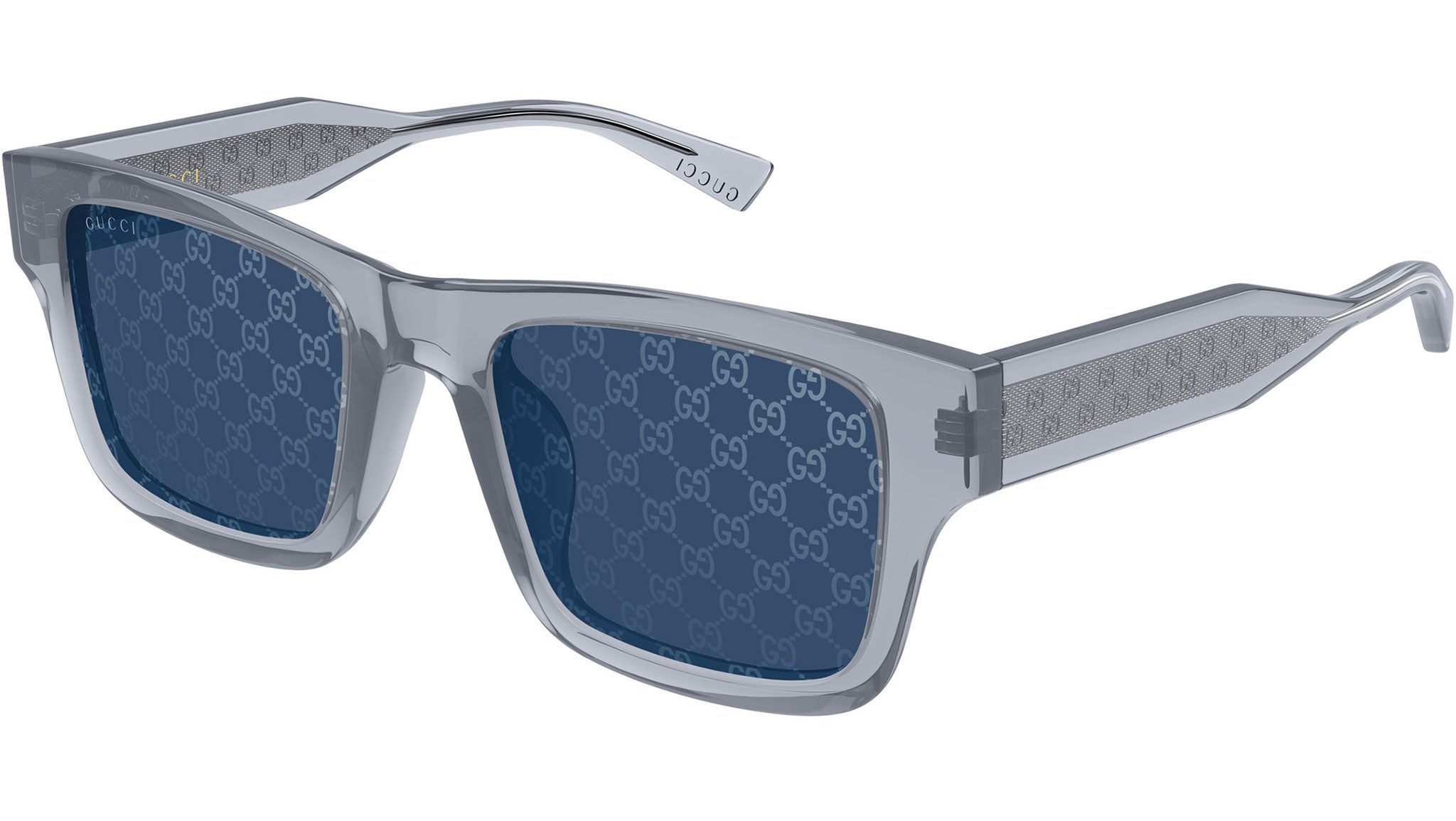 Occhiali da sole Gucci GG2072SA 004 uomo con montatura rettangolare in acetato riciclato grigio trasparente lucido e lenti blu solido + logo Guccissima mini classic argento a specchio in bio nylon. Linea: Sign. Codice modello: GG2072SA. Codice colore: 004. Made in Italy. Rivenditore autorizzato Gucci online. Gli occhiali vengono consegnati con custodia e accessori originali e sono coperti dalla garanzia ufficiale di 12 mesi del produttore.