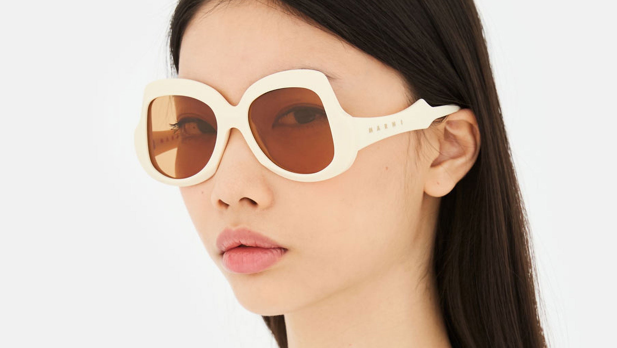 Occhiali da sole Marni Quelyfish Cream con montatura in acetato crema e lenti color refined. Codice modello: KHO. Made in Italy. Rivenditore autorizzato Marni online. Gli occhiali vengono consegnati con custodia e accessori originali e sono coperti dalla garanzia ufficiale di 12 mesi del produttore.