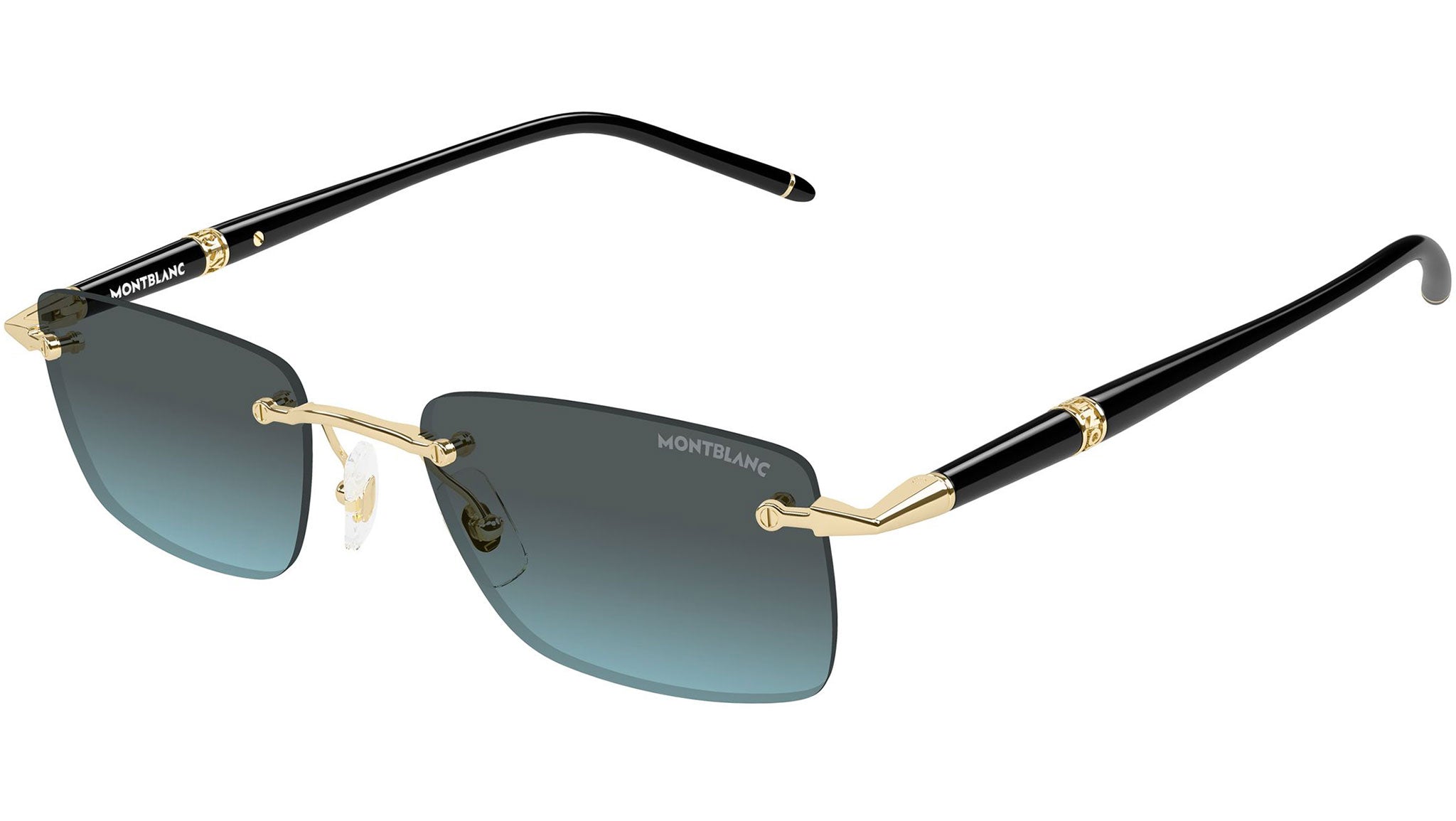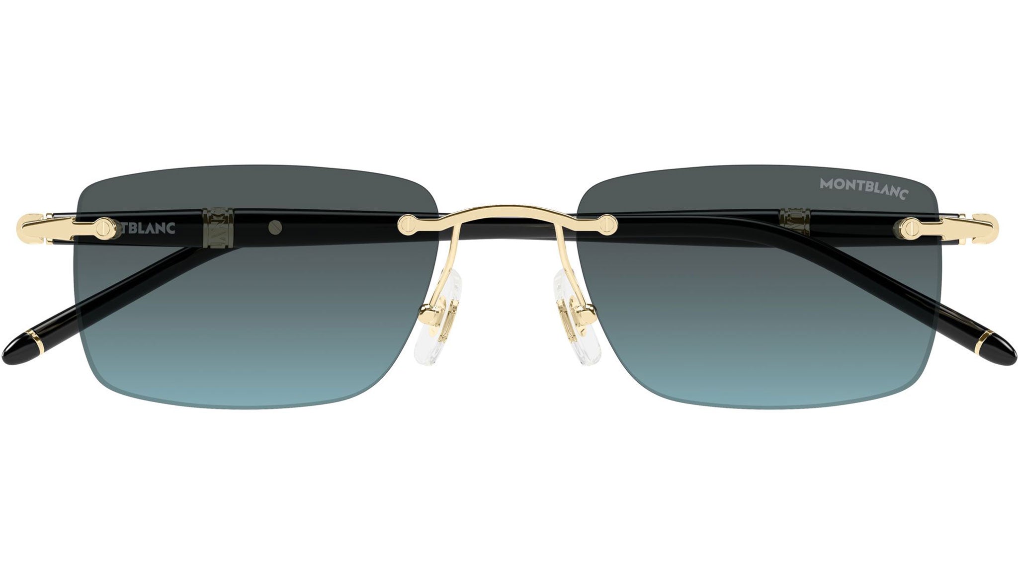 Occhiali da sole Montblanc MB0344S 010 uomo con montatura rettangolare in metallo oro chiaro lucido e lenti grigio / azzurro chiaro doppia sfumatura. Linea: Meisterstück. Codice modello: MB0344S. Codice colore: 010. Made in Japan. Rivenditore autorizzato Montblanc online. Gli occhiali vengono consegnati con custodia e accessori originali e sono coperti dalla garanzia ufficiale di 12 mesi del produttore.
