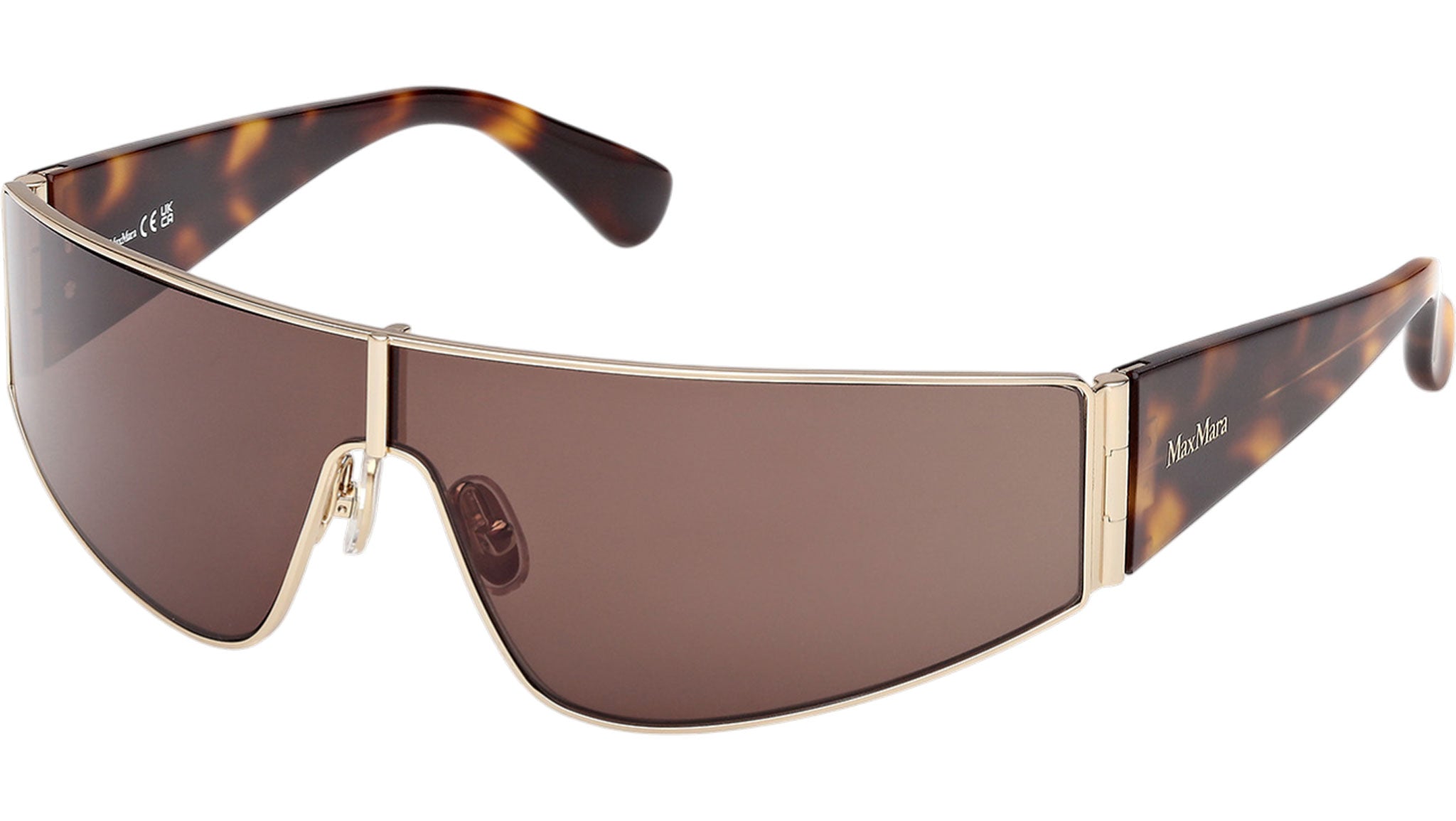 Occhiali da sole Max Mara donna modello Space MM0164 con montatura mascherina full-rim in metallo oro pallido lucido e lenti color marrone. Made in Italy. Codice Brand: MM 0164. Codice colore: 32E. Rivenditore autorizzato Max Mara online. Gli occhiali vengono consegnati con custodia e accessori originali e sono coperti da garanzia standard di 12 mesi del produttore.