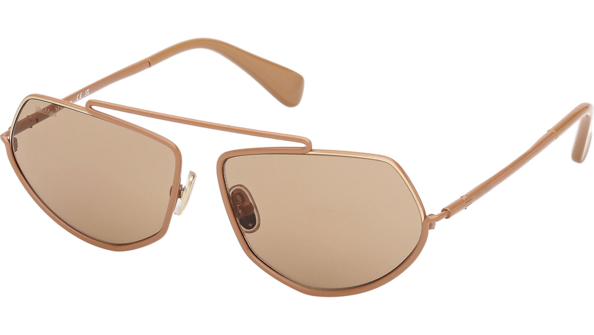 Occhiali da sole Max Mara donna modello Joey MM0165 con montatura rotonda full-rim in metallo marrone chiaro lucido e lenti color marrone. Made in Italy. Codice Brand: MM 0165. Codice colore: 45E. Rivenditore autorizzato Max Mara online. Gli occhiali vengono consegnati con custodia e accessori originali e sono coperti da garanzia standard di 12 mesi del produttore.