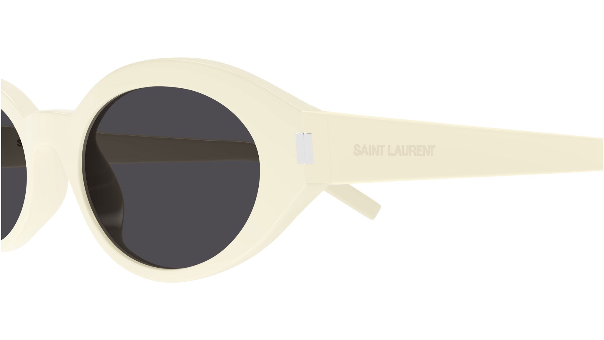 Occhiali da sole Saint Laurent SL 567 005 donna con montatura ovale in acetato riciclato avorio e lenti nero solido con AR black hole. Linea: Corner Angle. Codice modello: SL 567. Codice colore: 005. Made in Italy. Rivenditore autorizzato Saint Laurent online. Gli occhiali vengono consegnati con custodia e accessori originali e sono coperti dalla garanzia ufficiale di 12 mesi del produttore.