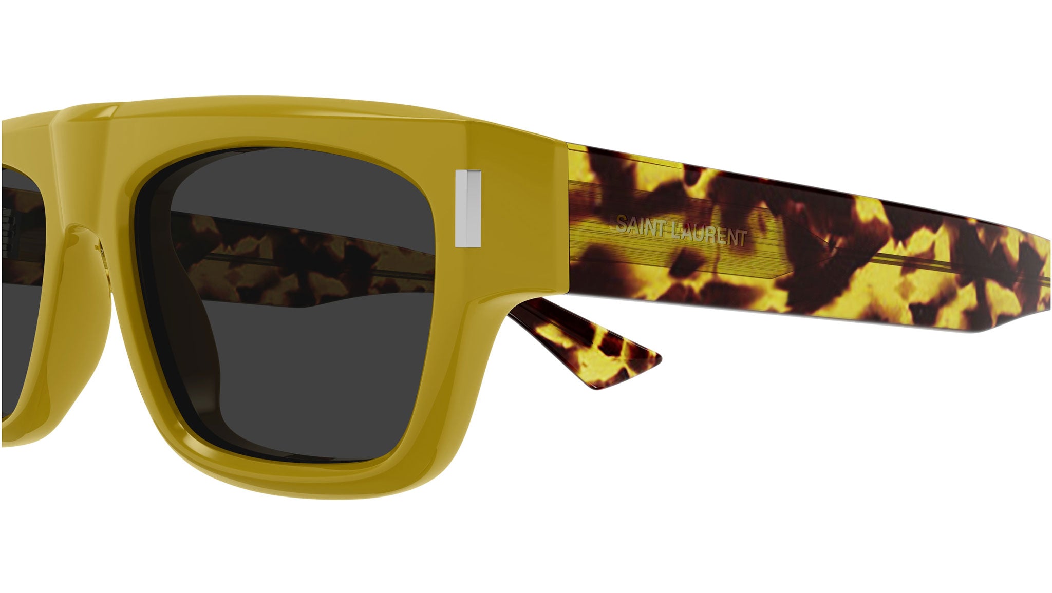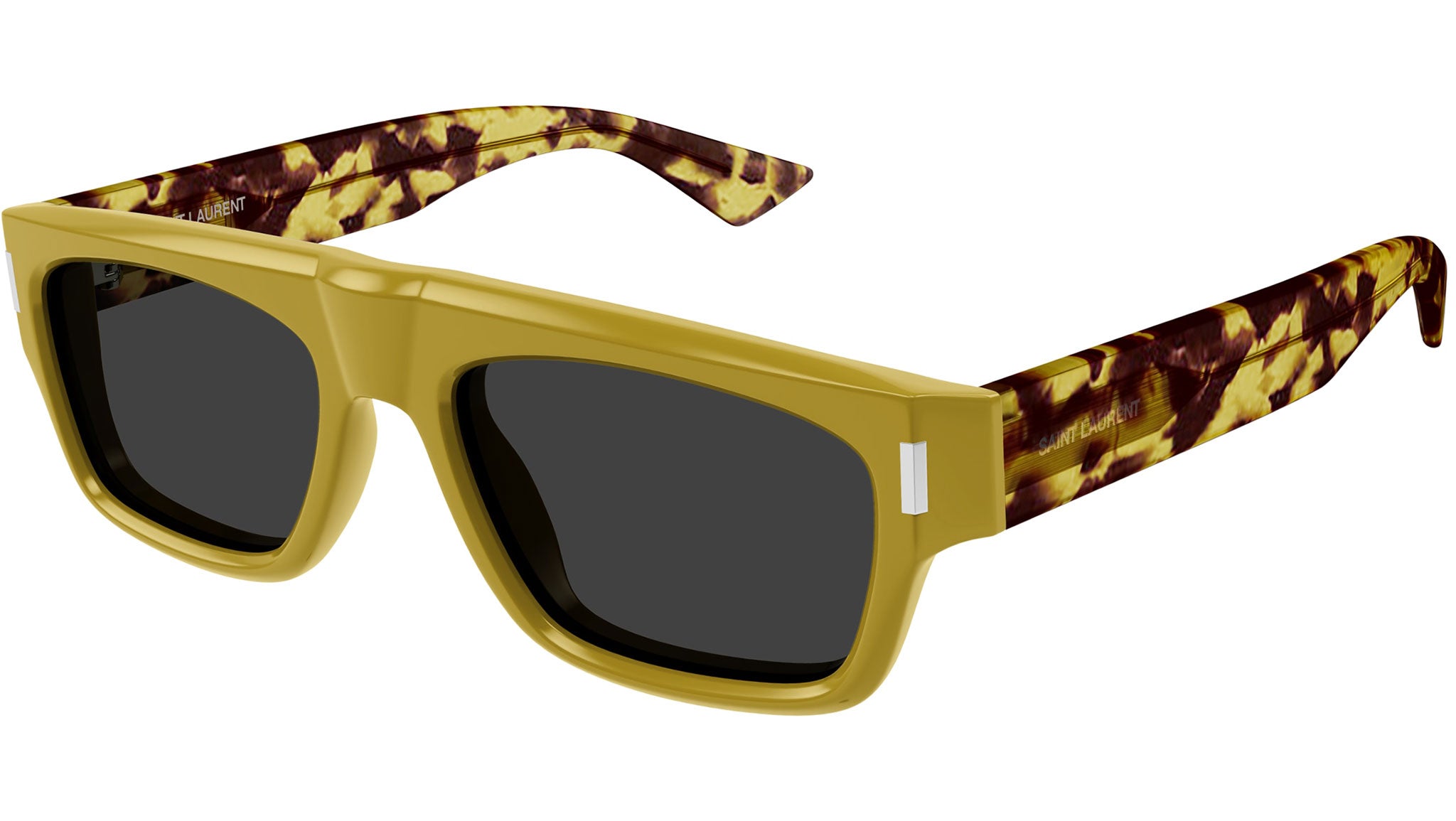 Occhiali da sole Saint Laurent SL 762 004 uomo con montatura rettangolare in acetato riciclato ocra e lenti grigio tinta unita. Linea: Corner Angle. Codice modello: SL 762. Codice colore: 004. Made in Italy. Rivenditore autorizzato Saint Laurent online. Gli occhiali vengono consegnati con custodia e accessori originali e sono coperti dalla garanzia ufficiale di 12 mesi del produttore.