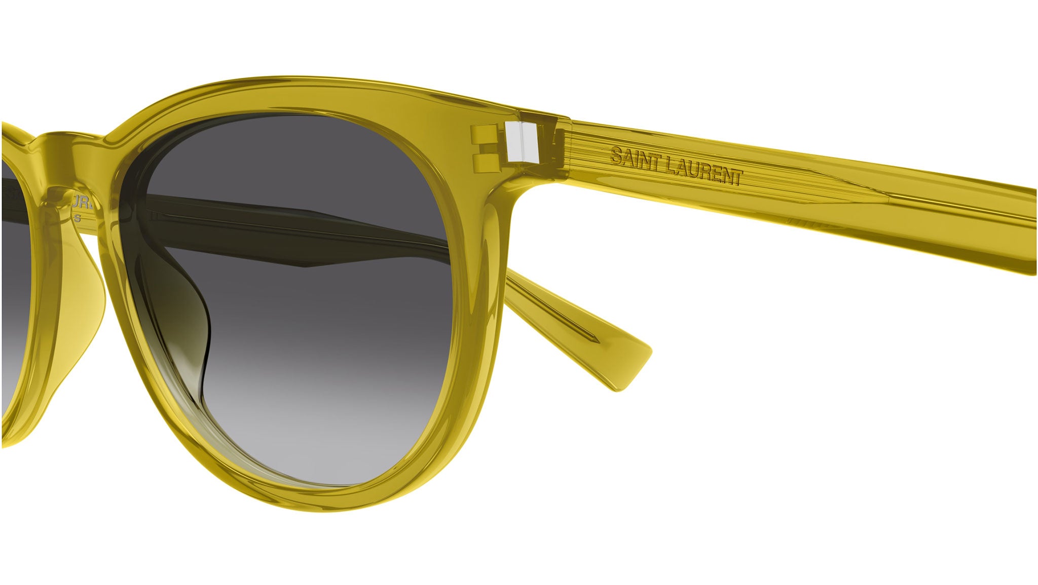 Occhiali da sole Saint Laurent SL 797 005 donna con montatura ovale in acetato riciclato giallo e lenti nero doppia sfumatura grigio. Linea: Corner Angle. Codice modello: SL 797. Codice colore: 005. Made in Italy. Rivenditore autorizzato Saint Laurent online. Gli occhiali vengono consegnati con custodia e accessori originali e sono coperti dalla garanzia ufficiale di 12 mesi del produttore.