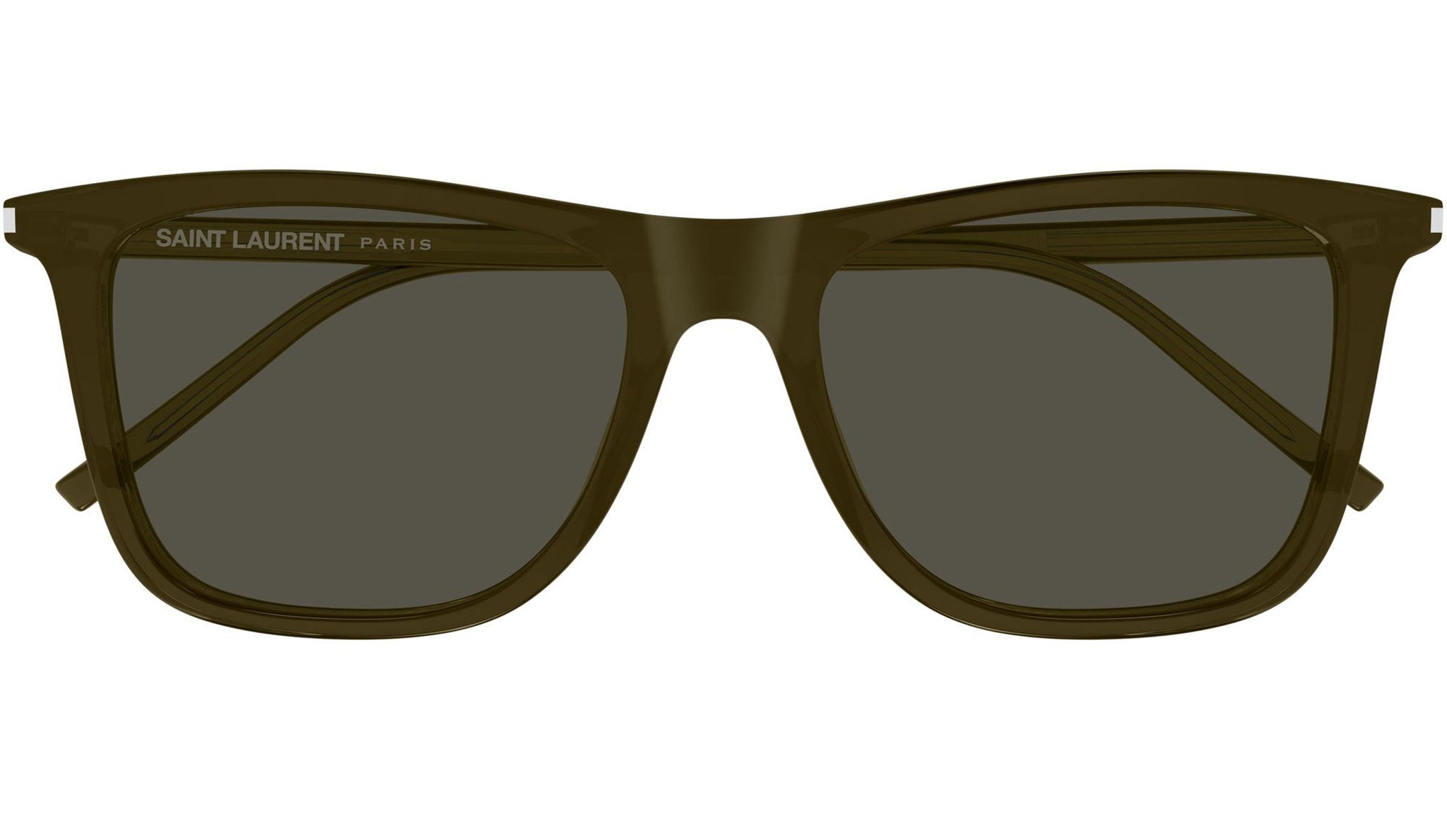 Occhiali da sole Saint Laurent SL 895 004 unisex con montatura rettangolare in acetato riciclato kaki trasparente lucido e lenti grigio tinta unita. Linea: Corner Angle. Codice modello: SL 895. Codice colore: 004. Made in Italy. Rivenditore autorizzato Saint Laurent online. Gli occhiali vengono consegnati con custodia e accessori originali e sono coperti dalla garanzia ufficiale di 12 mesi del produttore.