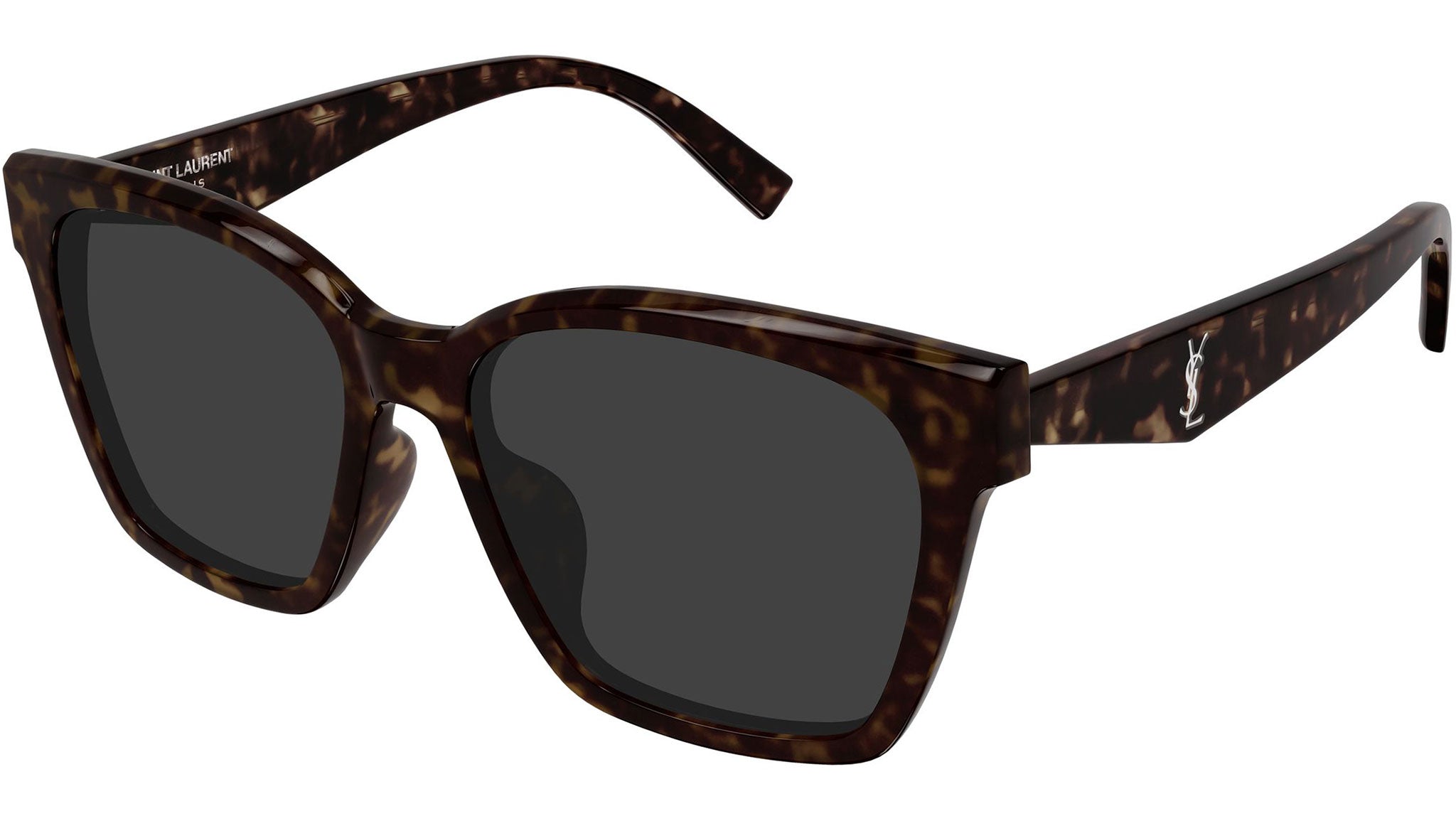 Occhiali da sole Saint Laurent SL M171/F 002 donna con montatura rettangolare in acetato riciclato avana scuro lucido e lenti grigio tinta unita. Linea: Monogram. Codice modello: SL M171/F. Codice colore: 002. Made in Japan. Rivenditore autorizzato Saint Laurent online. Gli occhiali vengono consegnati con custodia e accessori originali e sono coperti dalla garanzia ufficiale di 12 mesi del produttore.