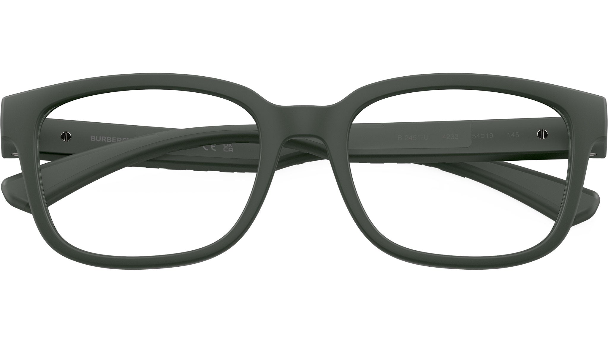 Occhiali da vista Burberry uomo modello BE2451U 4232 con montatura full rim in iniettato verde opaco e lenti demo. Fit universale. Fitting consigliato: XL. Linea: Textured Check. Codice modello: 0BE2451U. Codice colore: 4232. Rivenditore autorizzato online Burberry. Gli occhiali includono la custodia e gli accessori originali e sono coperti da una garanzia globale di 12 mesi.