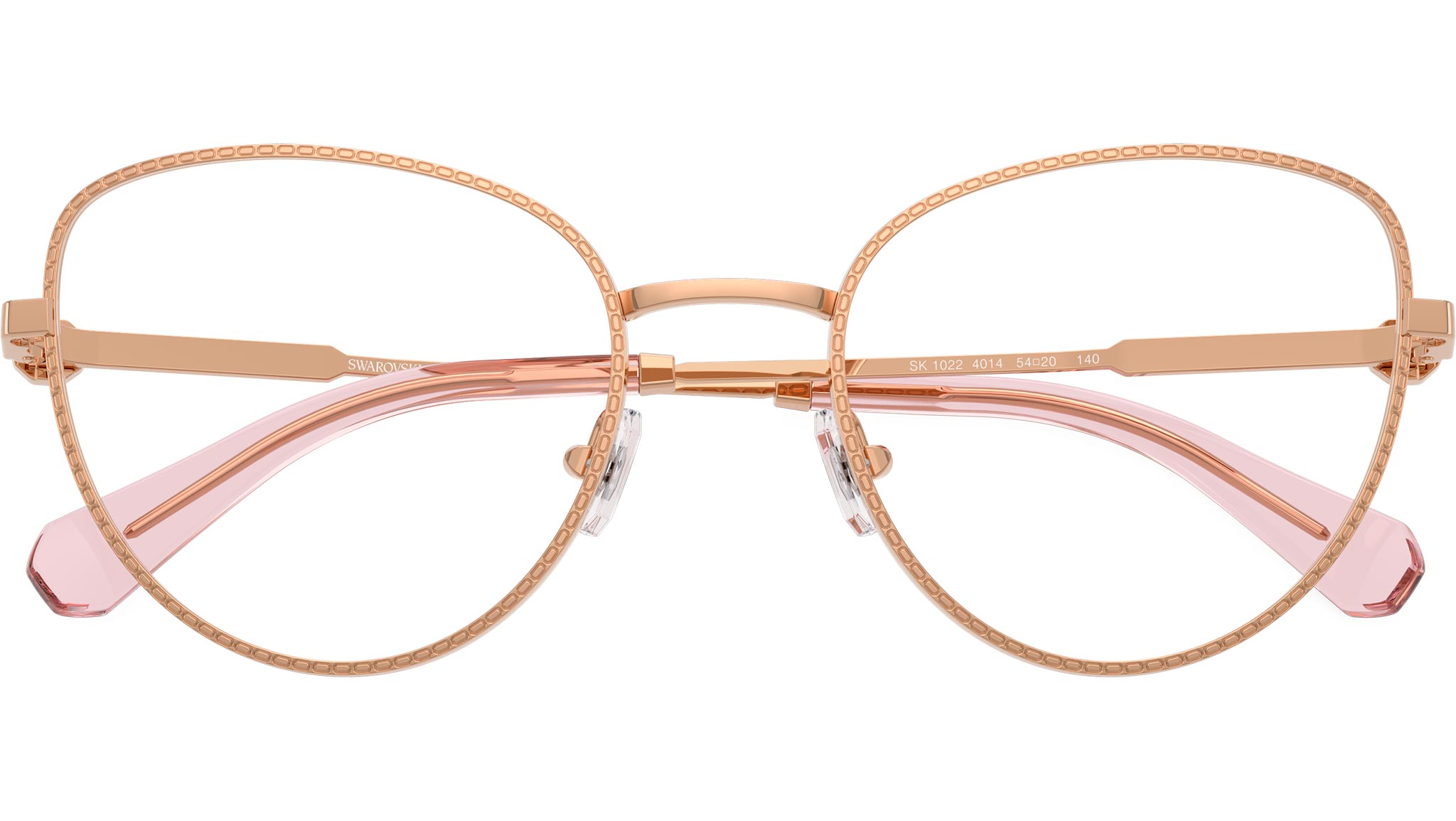 Occhiali da vista Swarovski SK1022 4014 donna, con montatura cat eye in metallo color oro rosa e lenti demo. Naselli regolabili. Linea: Science of Facets. Codice modello: SK1022. Codice colore: 4014. Rivenditore autorizzato Swarovski Eyewear online. Ogni prodotto Swarovski viene consegnato con astuccio originale e accessori ed è coperto da garanzia del produttore di 12 mesi.