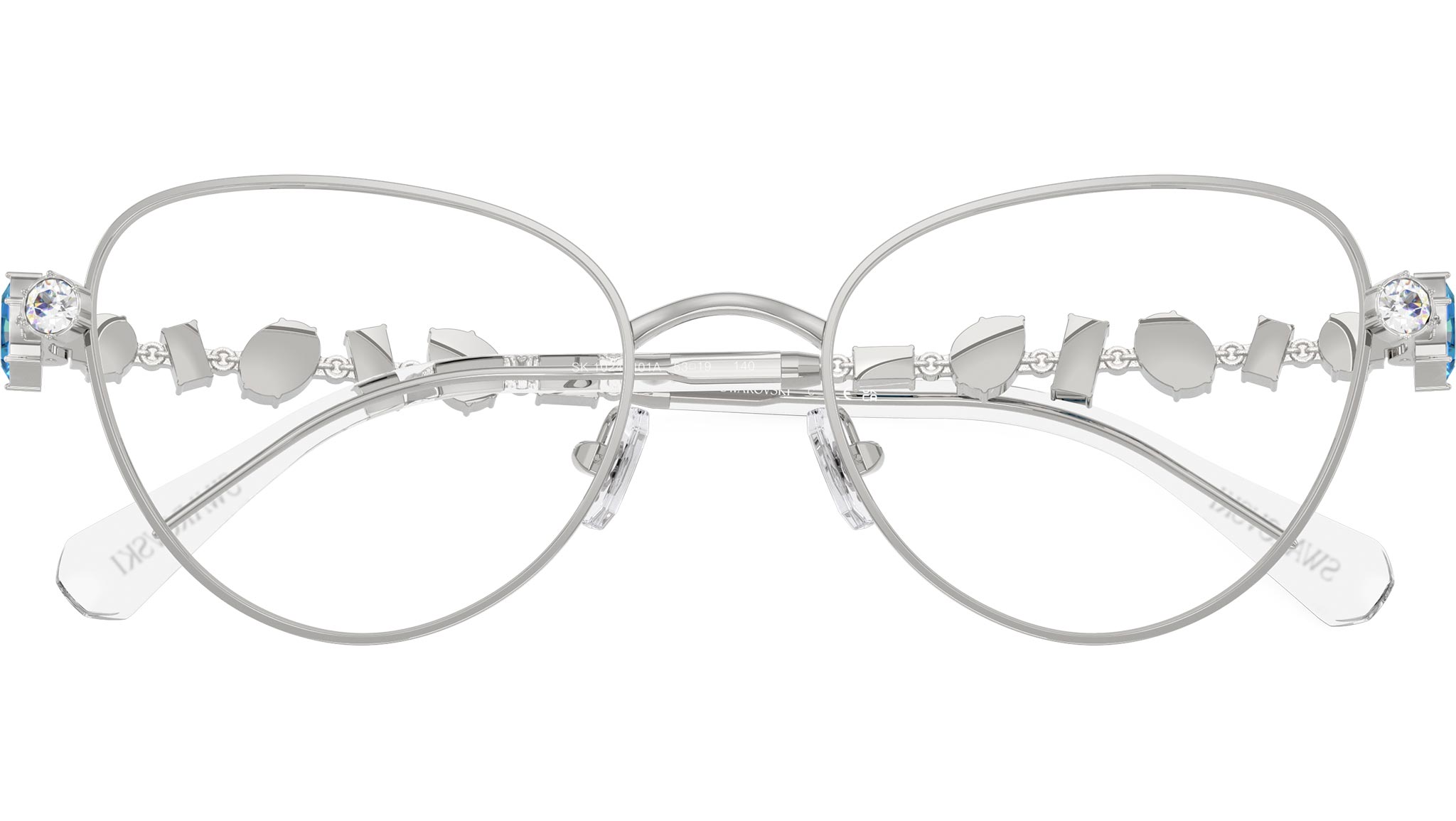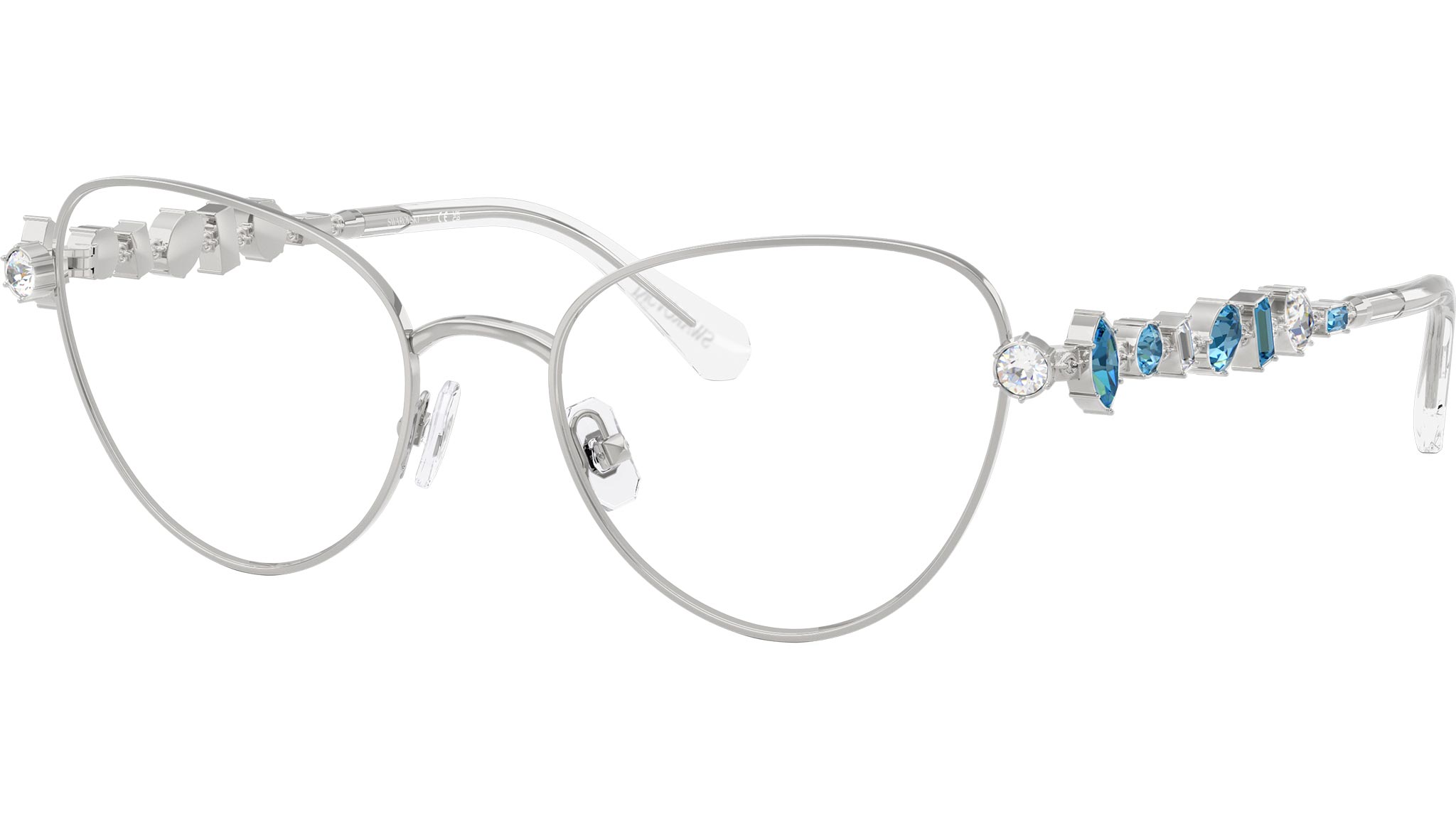 Occhiali da vista Swarovski SK1024 401A donna, con montatura cat eye in metallo color argento e lenti demo. Naselli regolabili. Linea: Science of Facets. Codice modello: SK1024. Codice colore: 401A. Rivenditore autorizzato Swarovski Eyewear online. Ogni prodotto Swarovski viene consegnato con astuccio originale e accessori ed è coperto da garanzia del produttore di 12 mesi.