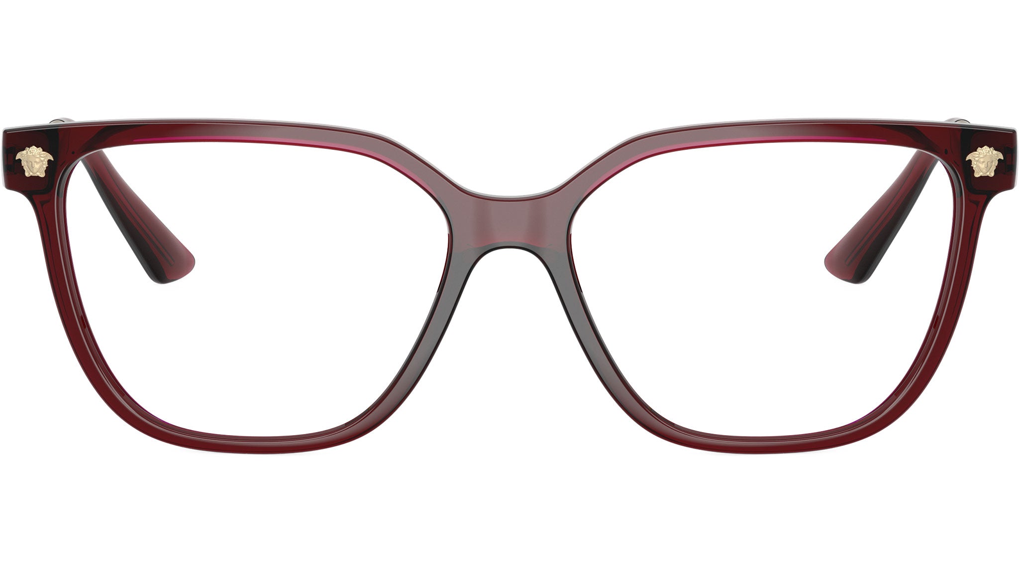 Montatura per occhiali da vista Versace donna modello VE3388U 5538 con montatura squadrata in iniettato ciliegia trasparente e lenti demo base 4. Fit universale. Linea: Daily Heritage. Codice Brand: 0VE3388U. Codice colore: 5538. Rivenditore autorizzato online Versace Eyewear. Ogni prodotto Versace viene consegnato con astuccio originale e accessori ed è coperto da garanzia del produttore di 12 mesi.