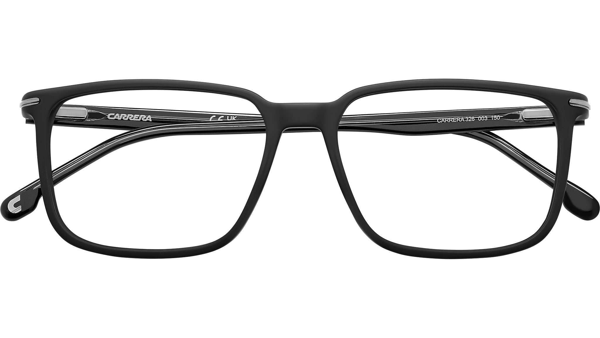 Occhiali da vista Carrera 326 003 uomo con montatura rettangolare in acetato nero opaco e lenti demo. Carrera progetta una nuova linea di occhiali da vista con un occhio di riguardo alla versatilità e alla leggerezza. La loro caratteristica principale? L’innovazione dell’acetato leggero, che permette spessori sottilissimi, a cui si aggiunge il comfort delle cerniere flessibili. Le aste a pinna omaggiano l’heritage del brand, esplicitato dal logo stampato e dall’inserto metallico nella forma di una “C”. Disponibile in due calibri, anche in versione multistrato oppure in doppia colorazione. Linea: Signature. Codice modello: 108074. Codice colore: 003. Rivenditore autorizzato Carrera online. Gli occhiali vengono consegnati con custodia e accessori originali e sono coperti dalla garanzia ufficiale di 12 mesi del produttore.