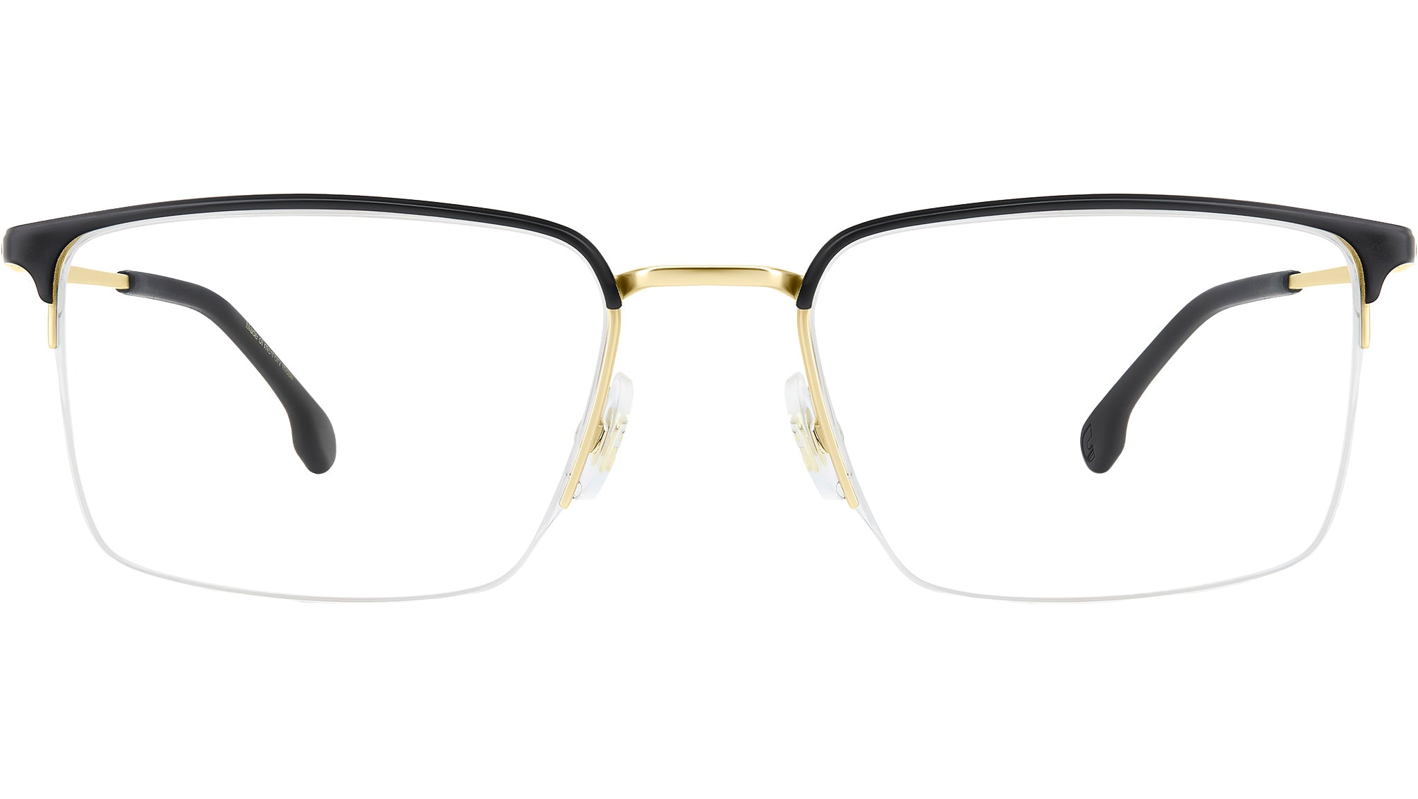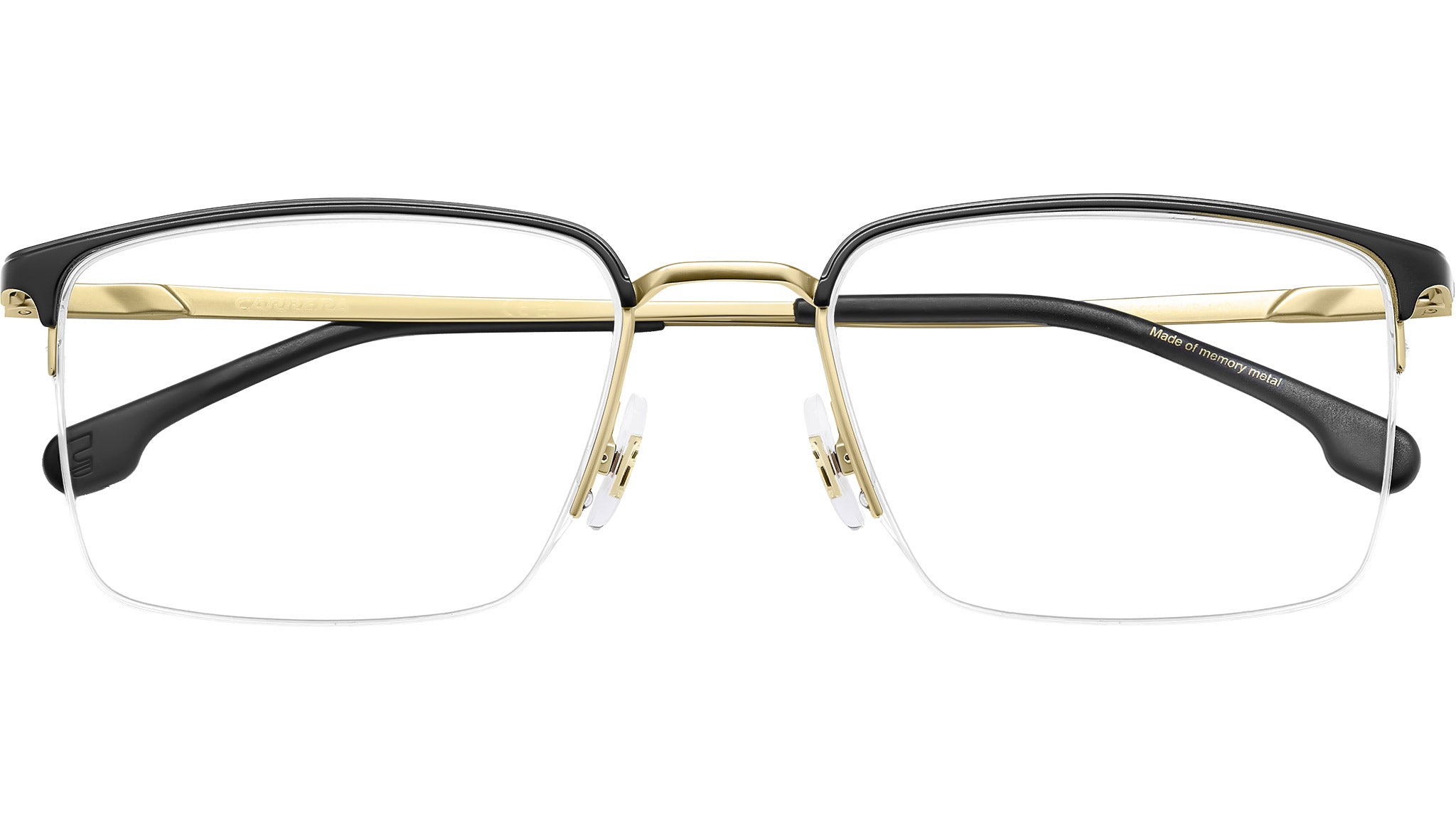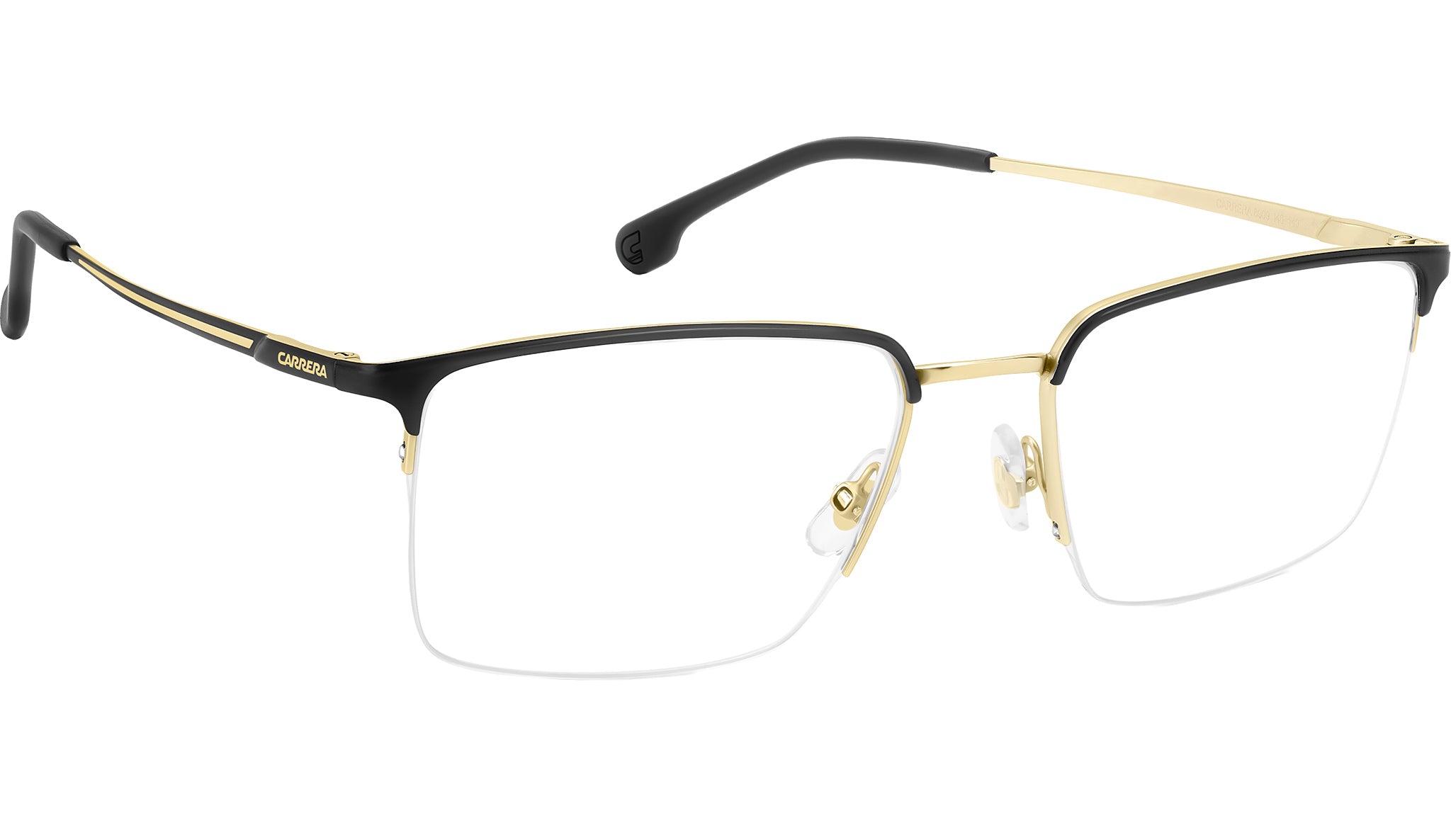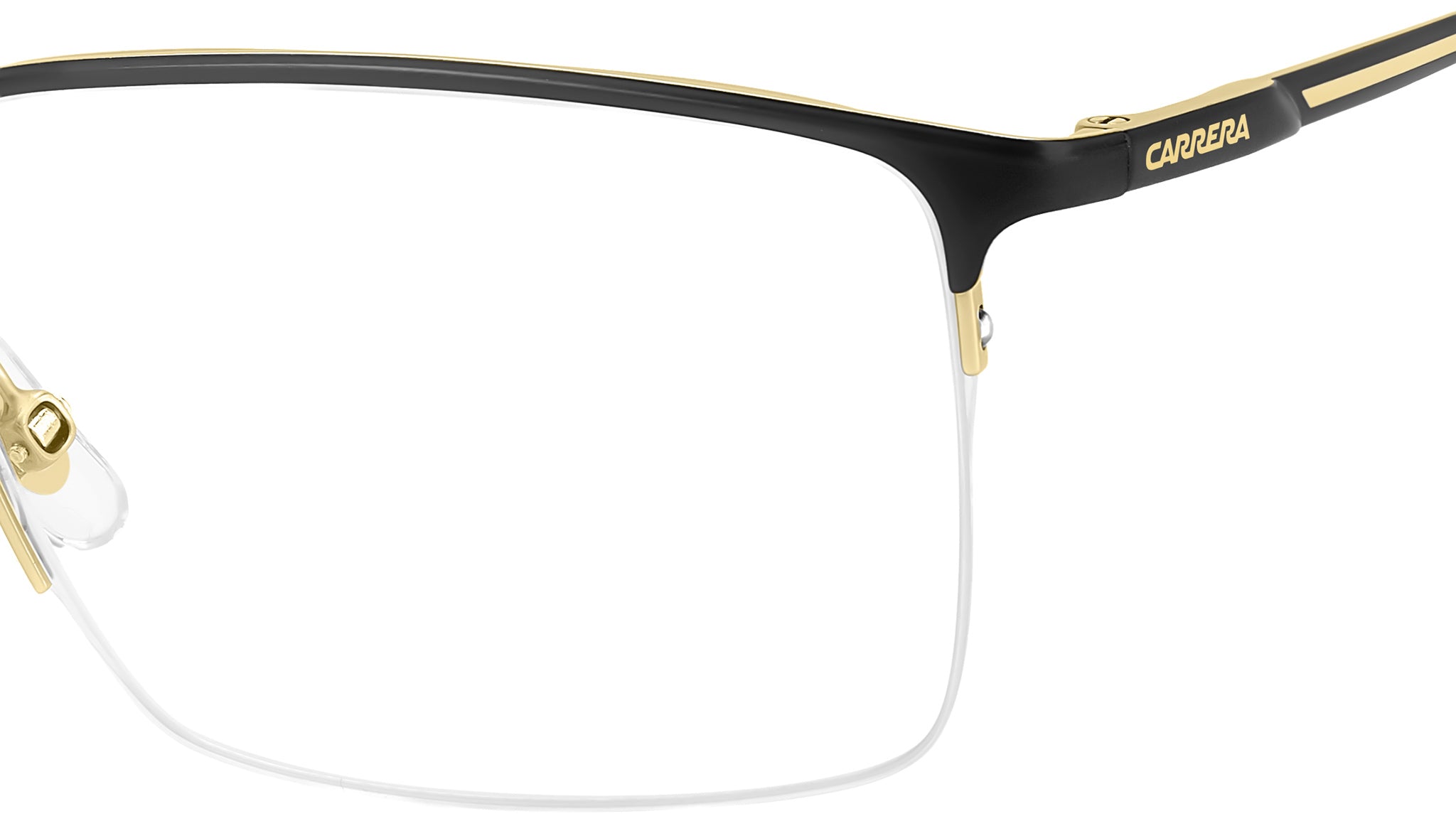 Occhiali da vista Carrera 8909 I46 uomo con montatura rettangolare in metallo nero opaco oro e lenti demo. Occhiali da vista Carrera dal design funzionale, ideali per chi cerca uno stile senza compromessi. Il ponte e le aste sono in Memory Metal: possono essere stressati e piegati, e tornano sempre alla forma originale. Le lenti sono sostenute da una montatura in acciaio inossidabile e da un sottile filo di nylor, proposto anche in versione colorata. La flag e il logo Carrera stampati sulle aste firmano il modello. Linea: Sport. Codice modello: 108982. Codice colore: I46. Rivenditore autorizzato Carrera online. Gli occhiali vengono consegnati con custodia e accessori originali e sono coperti dalla garanzia ufficiale di 12 mesi del produttore.