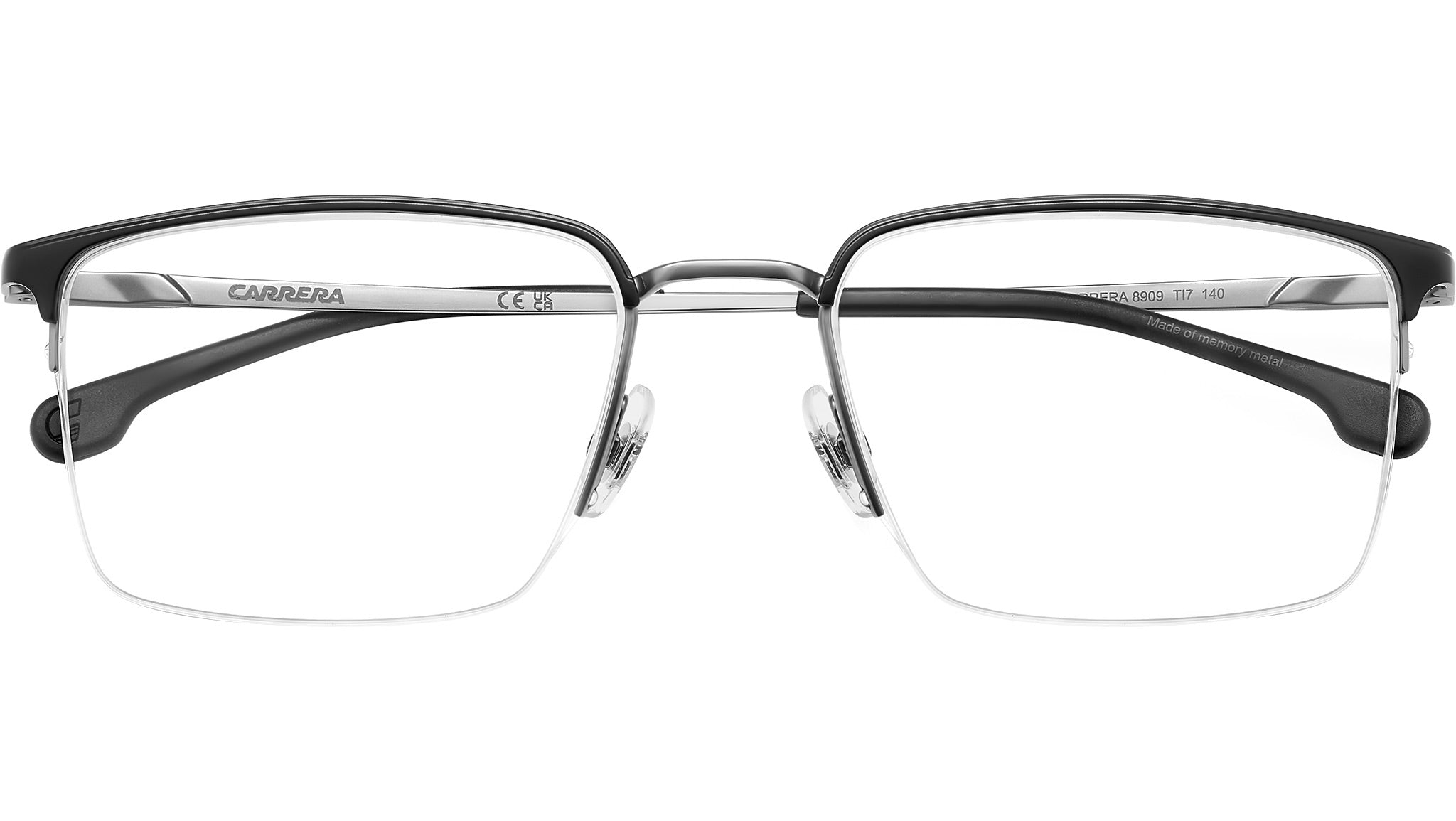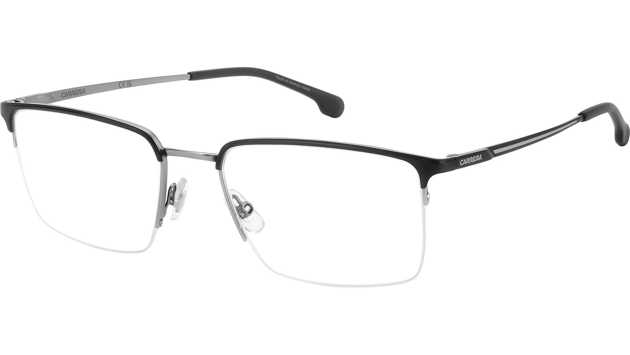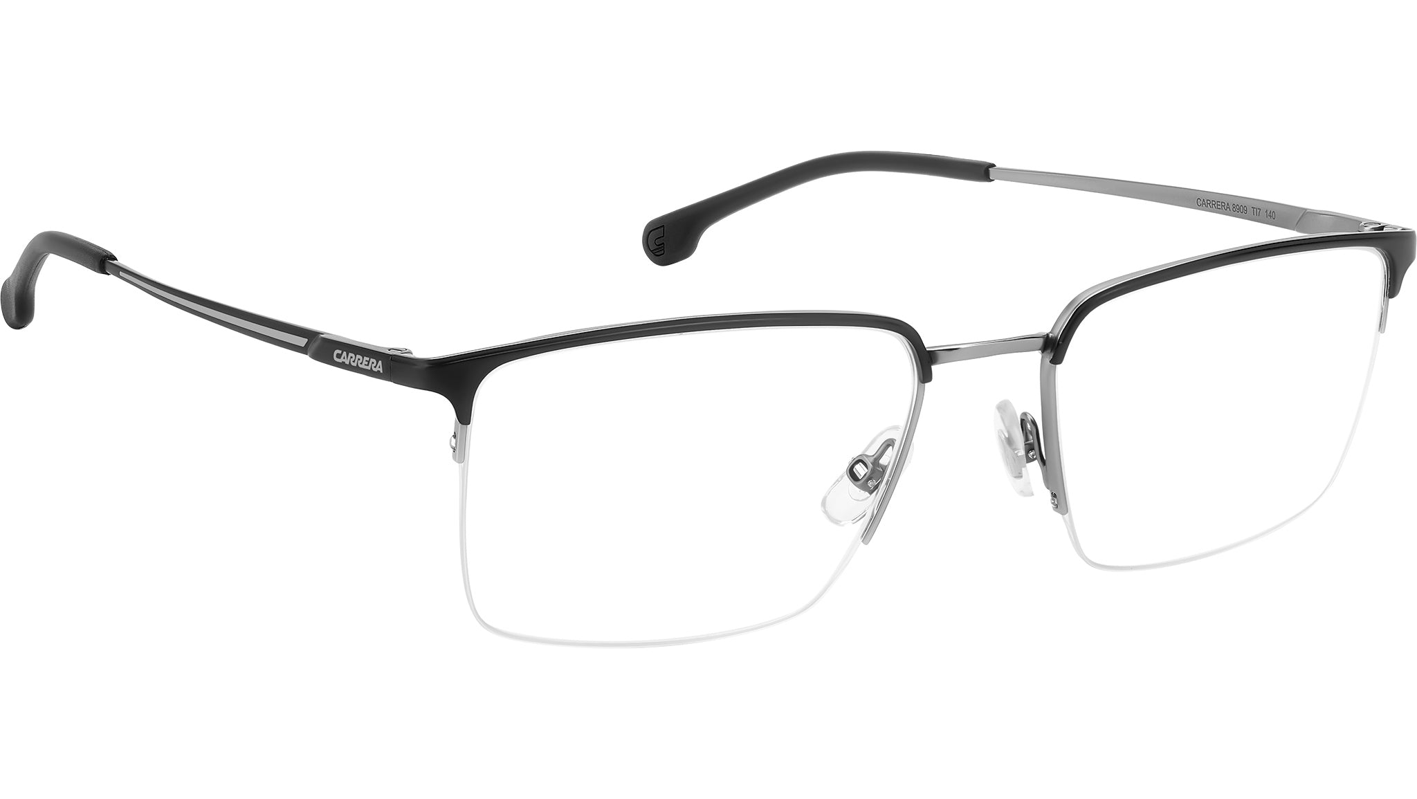 Occhiali da vista Carrera 8909 TI7 uomo con montatura rettangolare in metallo nero opaco rutenio e lenti demo. Occhiali da vista Carrera dal design funzionale, ideali per chi cerca uno stile senza compromessi. Il ponte e le aste sono in Memory Metal: possono essere stressati e piegati, e tornano sempre alla forma originale. Le lenti sono sostenute da una montatura in acciaio inossidabile e da un sottile filo di nylor, proposto anche in versione colorata. La flag e il logo Carrera stampati sulle aste firmano il modello. Linea: Sport. Codice modello: 108982. Codice colore: TI7. Rivenditore autorizzato Carrera online. Gli occhiali vengono consegnati con custodia e accessori originali e sono coperti dalla garanzia ufficiale di 12 mesi del produttore.