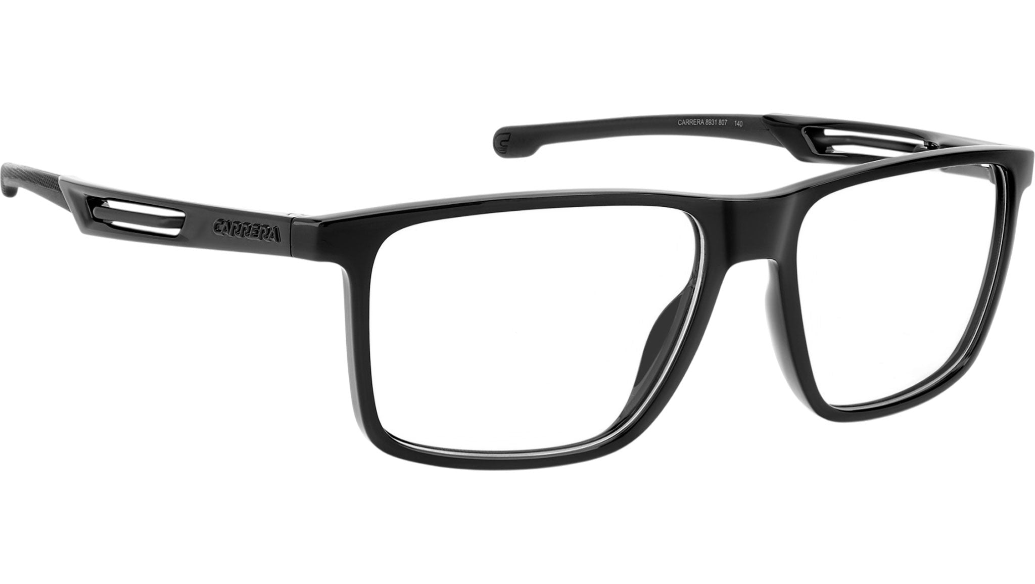 Occhiali da vista Carrera 8931 807 uomo con montatura rettangolare in nylon nero e lenti demo. Linea: Sport. Codice modello: 111654. Codice colore: 807. Rivenditore autorizzato Carrera online. Gli occhiali vengono consegnati con custodia e accessori originali e sono coperti dalla garanzia ufficiale di 12 mesi del produttore.