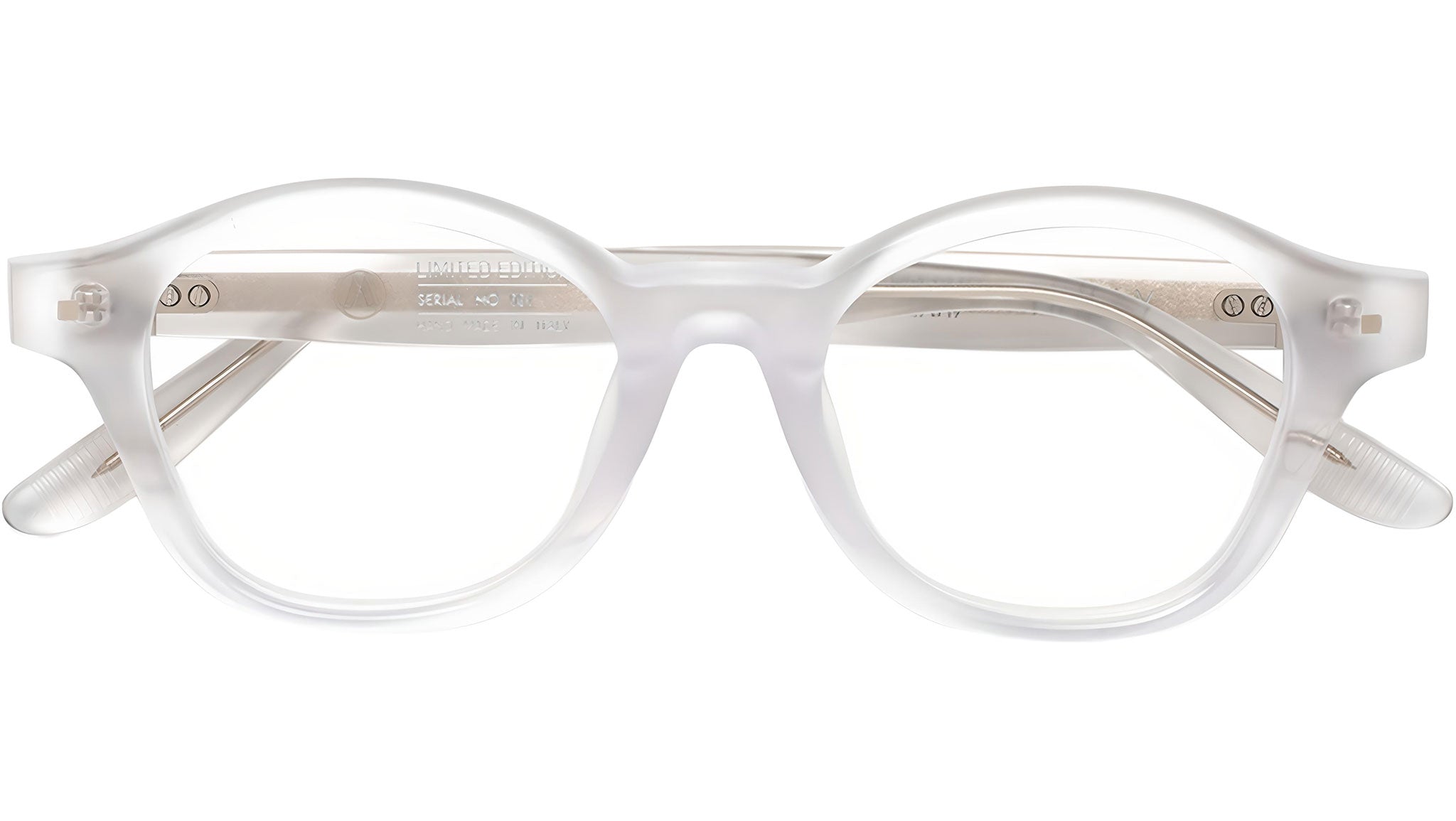 Occhiali da vista Ottomila Holly Crystal con montatura unisex rotonda in acetato grigio chiaro trasparente e lenti demo. Limited Edition. Linea: Seasonal. Codice modello: 1KQ. Made in Italy. Rivenditore autorizzato 8000 Eyewear online. Gli occhiali vengono consegnati con custodia e accessori originali e sono coperti dalla garanzia ufficiale di 12 mesi del produttore.
