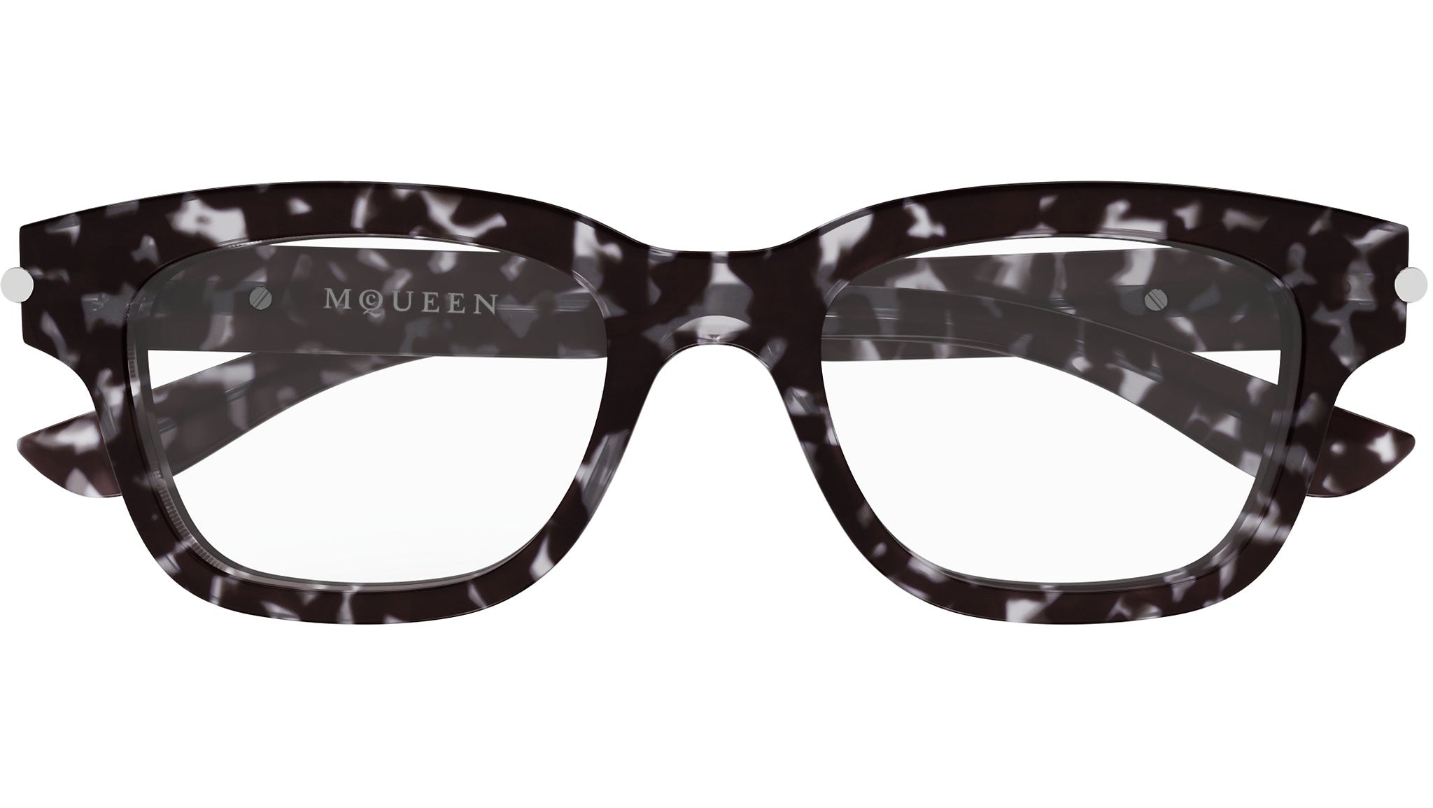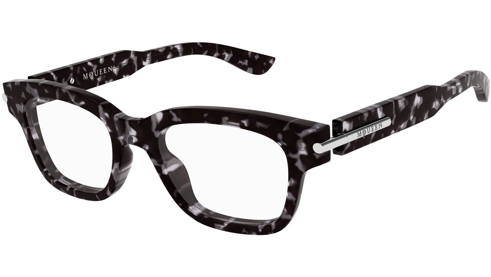 Occhiali da vista Alexander McQueen T-Bar modello AM0497O in acetato riciclato rettangolari codice colore 006 grigio lucido avana scuro con aste avana e lenti demo. Rivenditore autorizzato Alexander McQueen online. Gli occhiali vengono consegnati con custodia e accessori originali e sono coperti dalla garanzia ufficiale di 12 mesi del produttore.