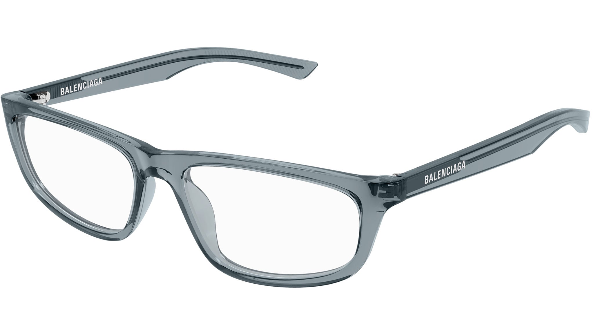 Occhiali da vista Balenciaga BB0407O 004 unisex con montatura rettangolare in acetato riciclato grigio blu trasparente e lenti demo. Linea: Everyday. Codice modello: BB0407O. Codice colore: 004. Made in Italy. Rivenditore autorizzato Balenciaga online. Gli occhiali vengono consegnati con custodia e accessori originali e sono coperti dalla garanzia ufficiale di 12 mesi del produttore.