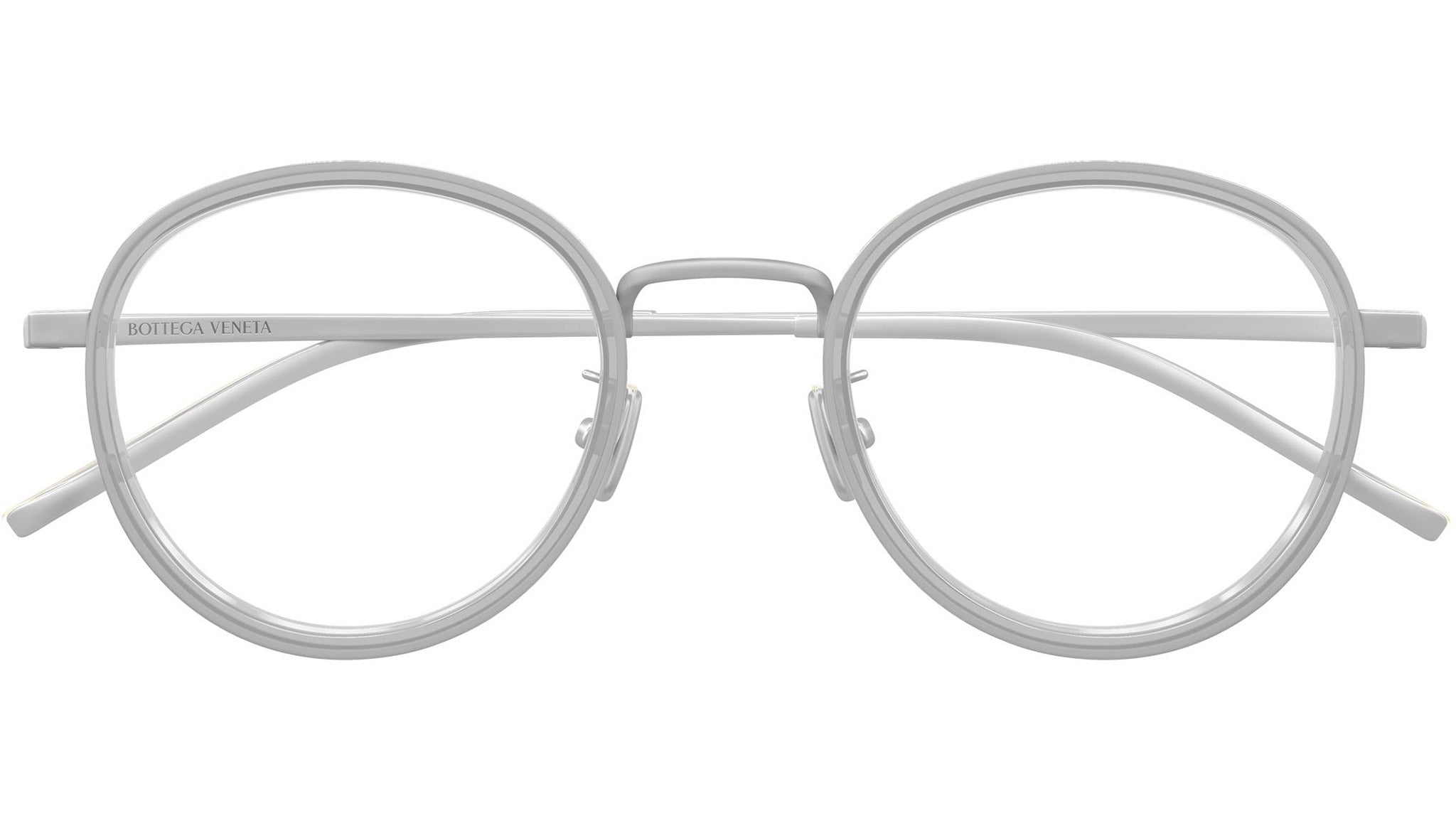 Occhiali da vista Bottega Veneta BV1428OA 004 unisex con montatura pantos in titanio argento antico semilucido / cerchio tortora trasparente e lenti demo. Linea: Intrecciato. Codice modello: BV1428OA. Codice colore: 004. Made in Japan. Rivenditore autorizzato Bottega Veneta online. Gli occhiali vengono consegnati con custodia e accessori originali e sono coperti dalla garanzia ufficiale di 12 mesi del produttore.