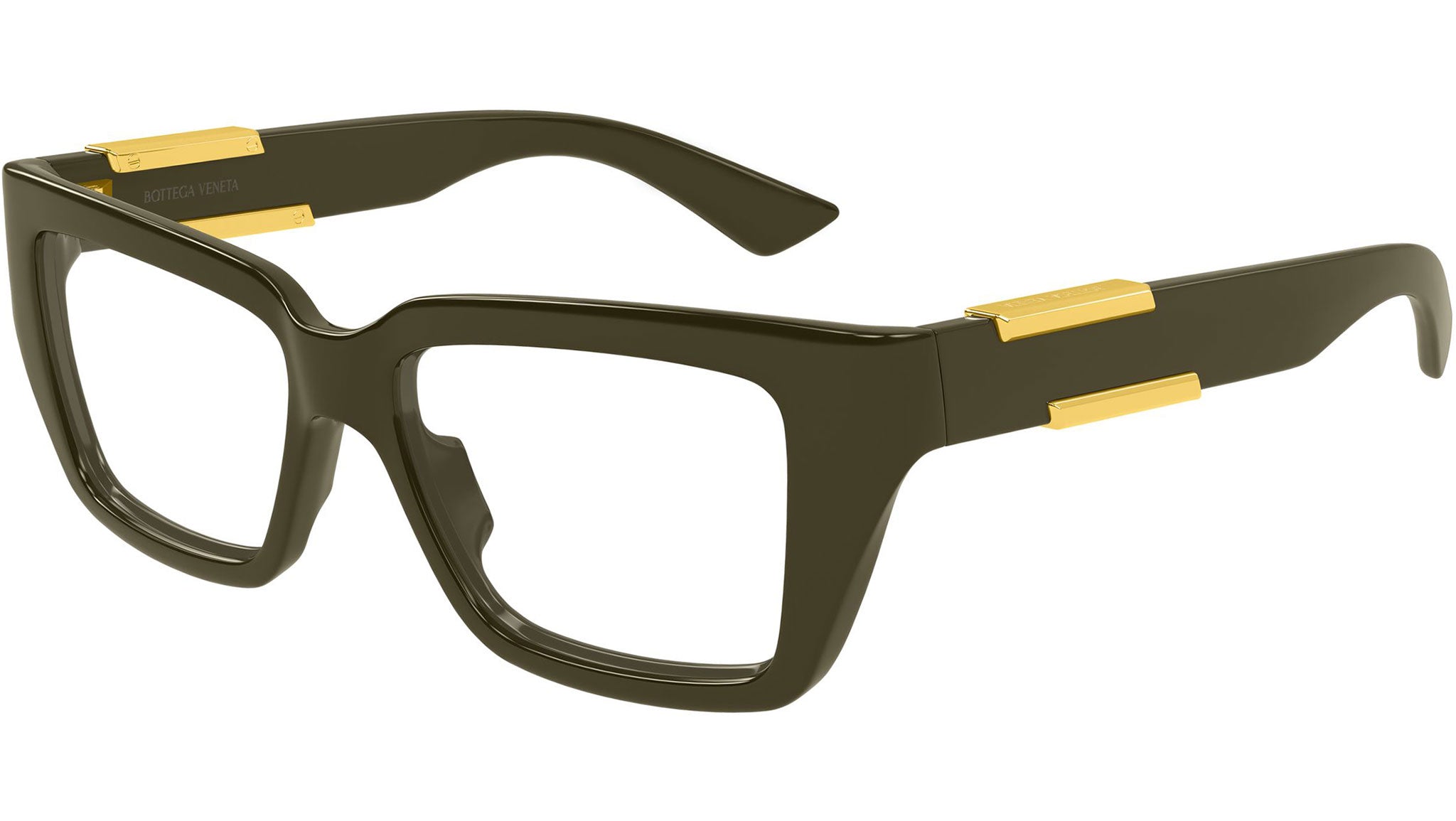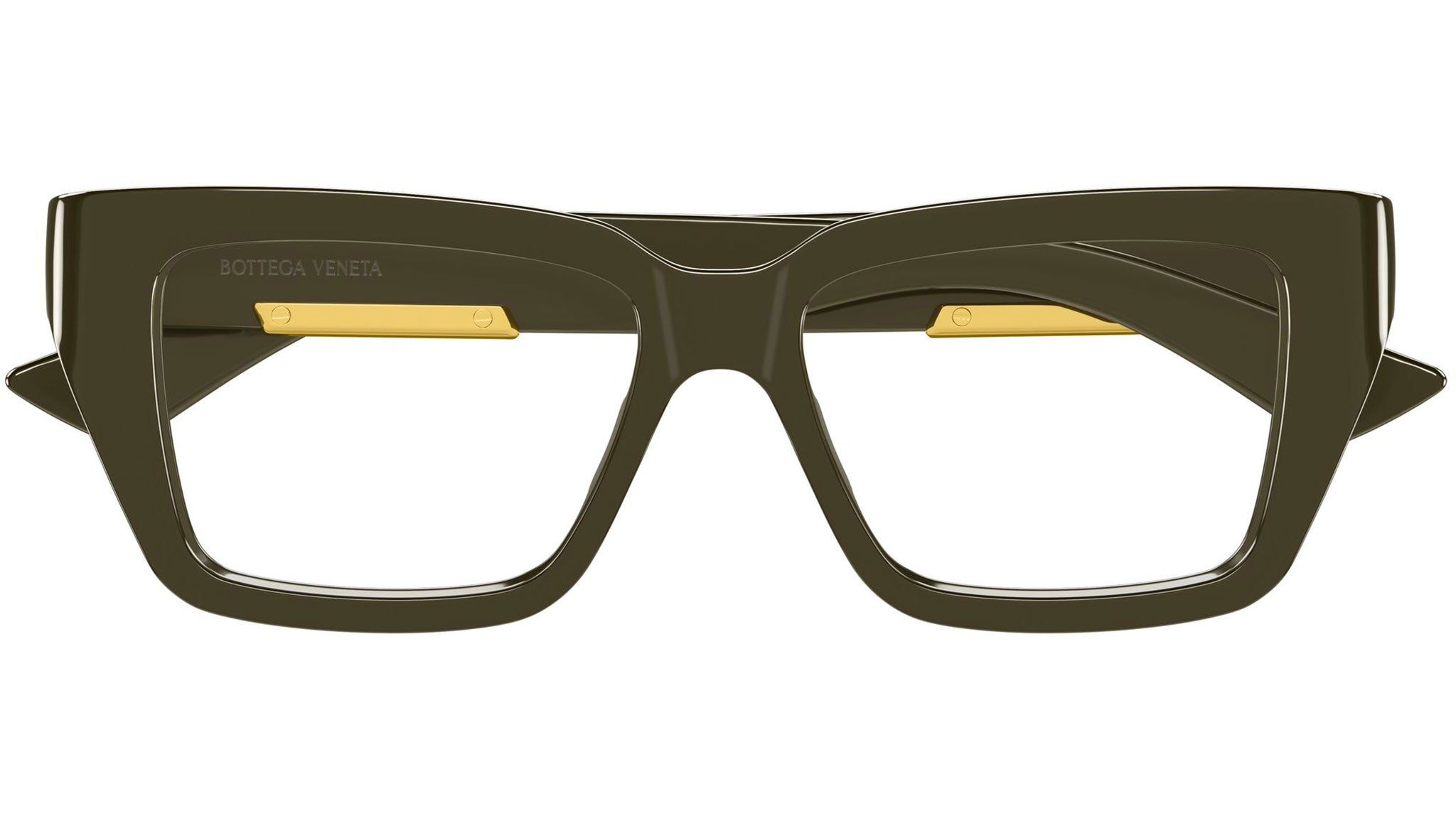 Occhiali da vista Bottega Veneta BV1455O 003 donna con montatura rettangolare in inietatto verde scuro tinta unita lucido e lenti demo. Linea: Ribbon. Codice modello: BV1455O. Codice colore: 003. Made in Japan. Rivenditore autorizzato Bottega Veneta online. Gli occhiali vengono consegnati con custodia e accessori originali e sono coperti dalla garanzia ufficiale di 12 mesi del produttore.