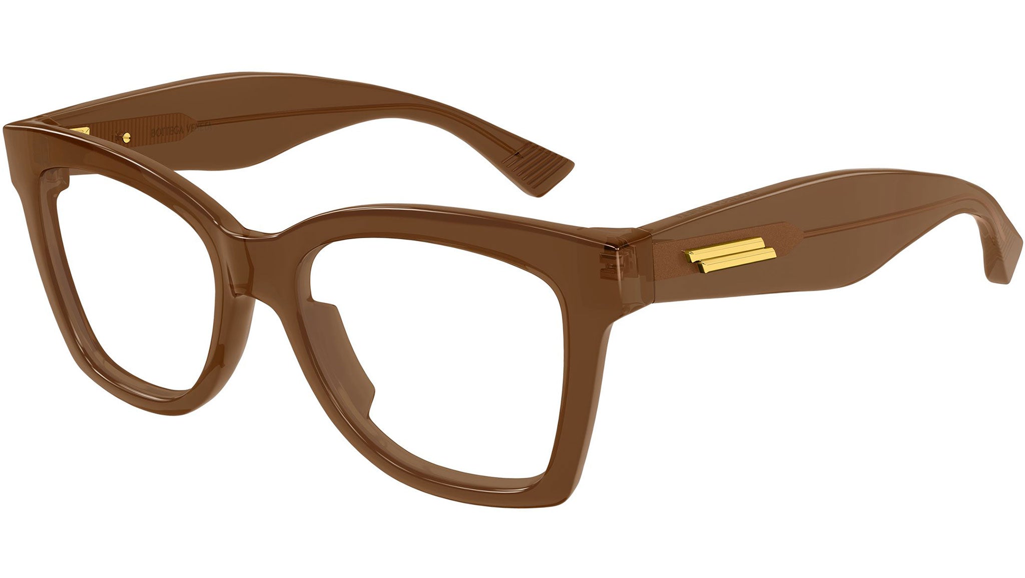 Occhiali da vista Bottega Veneta BV1459O 004 donna con montatura butterfly in acetato riciclato marrone trasparente lucido e lenti demo. Linea: Ribbon. Codice modello: BV1459O. Codice colore: 004. Made in Italy. Rivenditore autorizzato Bottega Veneta online. Gli occhiali vengono consegnati con custodia e accessori originali e sono coperti dalla garanzia ufficiale di 12 mesi del produttore.