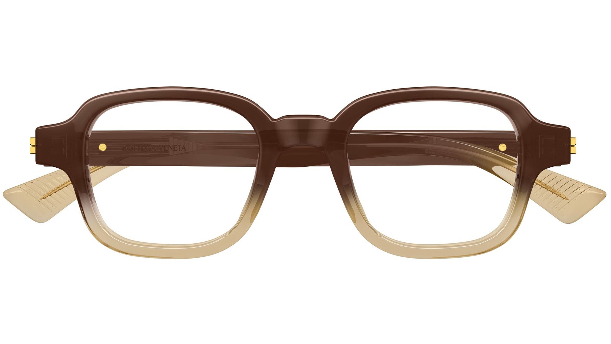 Occhiali da vista Bottega Veneta BV1462O 008 uomo con montatura rettangolare in acetato riciclato miele trasparente lucido sfumato a arancione chiaro trasparente e lenti demo. Linea: Ribbon. Codice modello: BV1462O. Codice colore: 008. Made in Japan. Rivenditore autorizzato Bottega Veneta online. Gli occhiali vengono consegnati con custodia e accessori originali e sono coperti dalla garanzia ufficiale di 12 mesi del produttore.