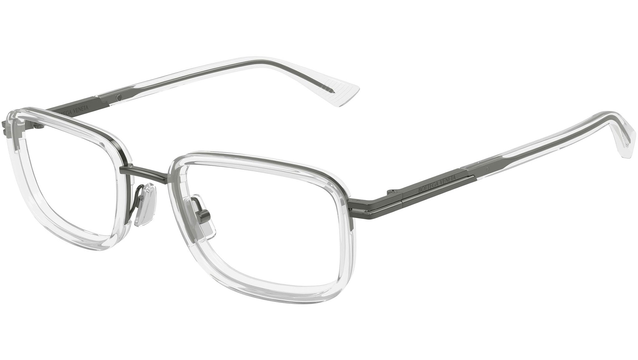 Occhiali da vista Bottega Veneta BV1464O 008 uomo con montatura rettangolare in metallo rutenio scuro lucido con cerchi in cristallo trasparente lucidi e lenti demo. Linea: Ribbon. Codice modello: BV1464O. Codice colore: 008. Made in Italy. Rivenditore autorizzato Bottega Veneta online. Gli occhiali vengono consegnati con custodia e accessori originali e sono coperti dalla garanzia ufficiale di 12 mesi del produttore.