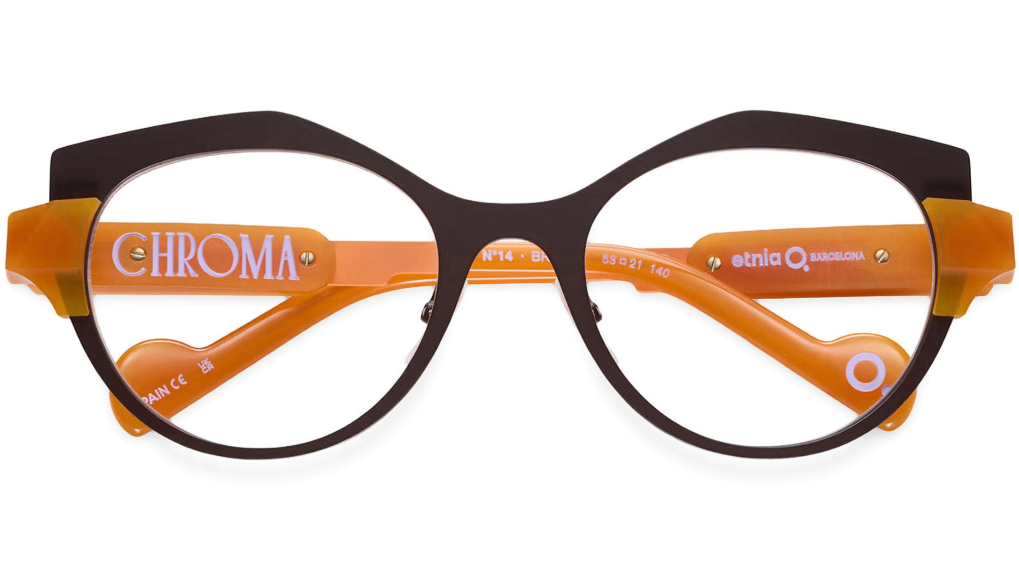 Occhiali da vista Etnia Barcelona CHROMA N14 in acetato marrone / arancione con lenti demo. Codice modello: CHROMA N14. Codice colore: BROG. Rivenditore autorizzato online Etnia Barcelona. Gli occhiali vengono forniti con custodia e accessori originali e sono coperti dalla garanzia standard del produttore di 12 mesi.