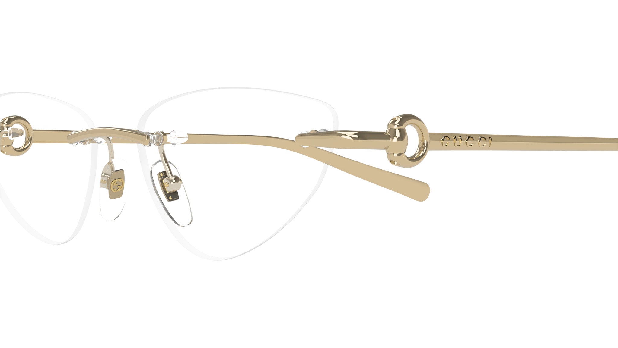 Occhiali da vista Gucci modello GG1702O linea Horsebit in metallo forma a gatto codice colore 002 oro endura lucido con aste in oro e lenti demo. Rivenditore autorizzato Gucci online. Gli occhiali vengono consegnati con custodia e accessori originali e sono coperti dalla garanzia ufficiale di 12 mesi del produttore.
