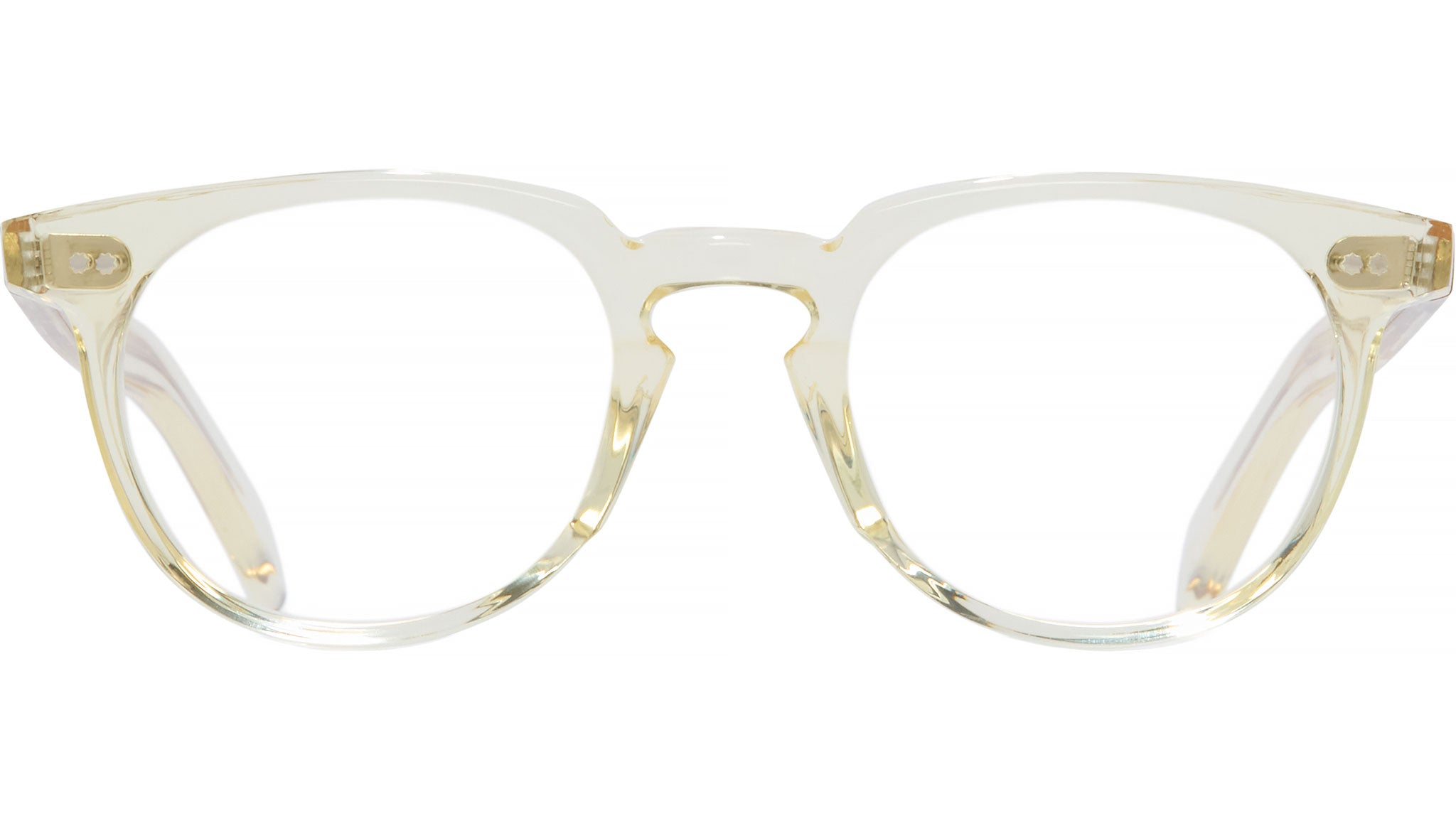 Occhiali da vista Cutler and Gross GR09 Optical B4 unisex con montatura rotonda in acetato giallo cristallo e lenti demo. Codice modello: GR09. Codice colore: B4. Rivenditore autorizzato Cutler and Gross online. Gli occhiali vengono consegnati con custodia e accessori originali e sono coperti dalla garanzia ufficiale di 12 mesi del produttore.