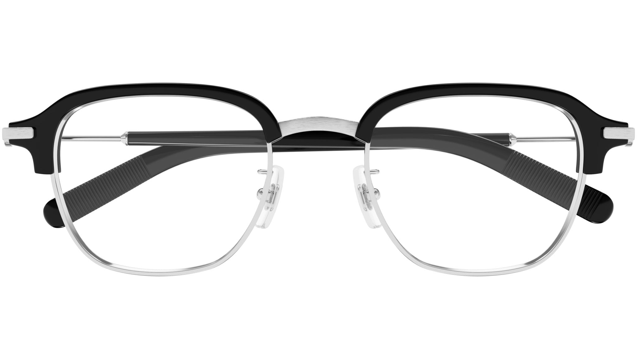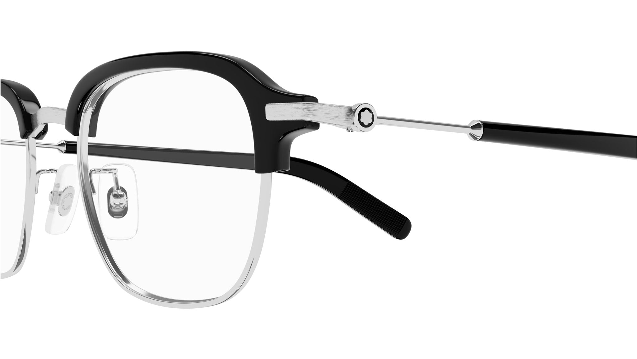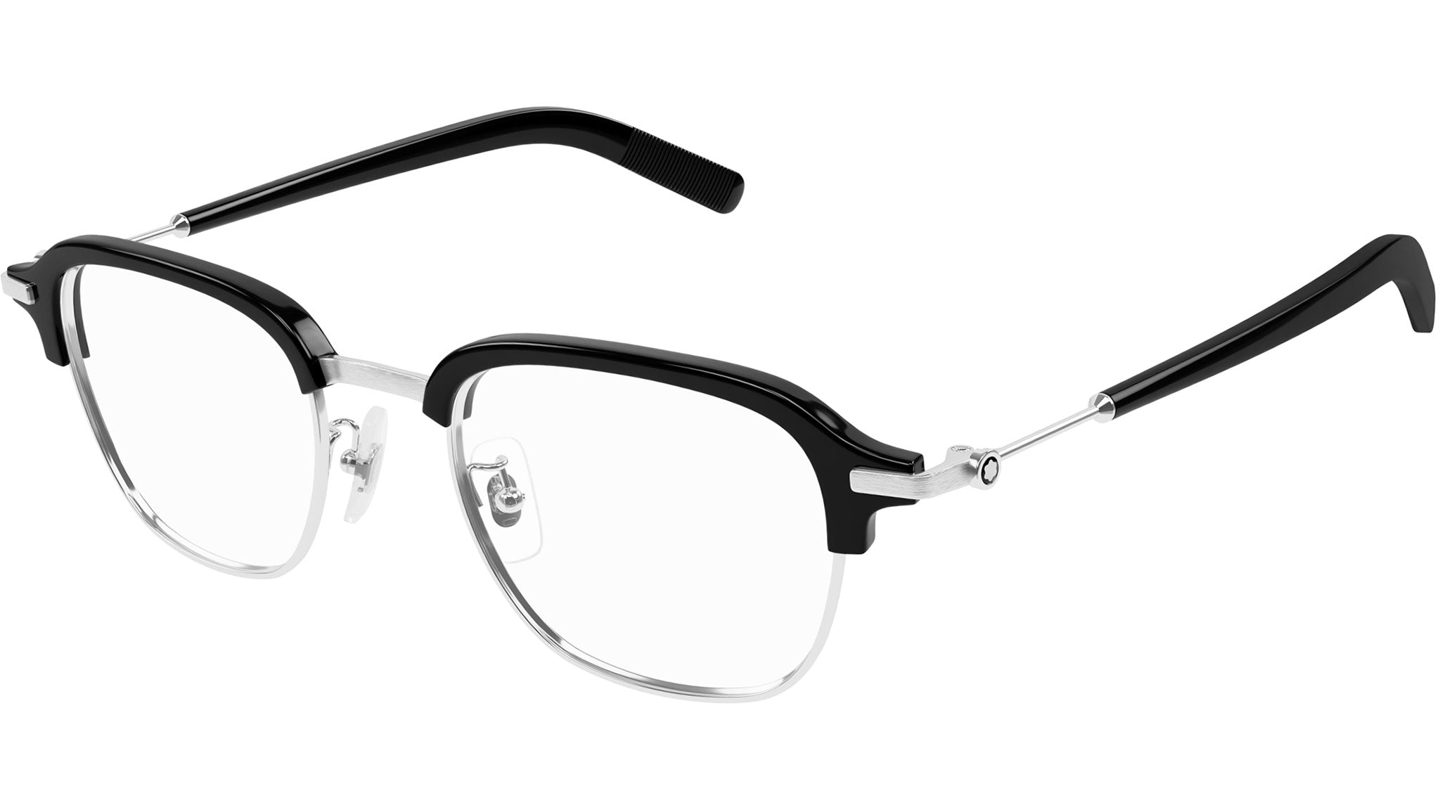 Occhiali da vista Montblanc MB0390O 001 uomo con montatura rettangolare in metallo argento lucido / nero lucido e lenti demo. Linea: Snowcap. Codice modello: MB0390O. Codice colore: 001. Made in Japan. Rivenditore autorizzato Montblanc online. Gli occhiali vengono consegnati con custodia e accessori originali e sono coperti dalla garanzia ufficiale di 12 mesi del produttore.