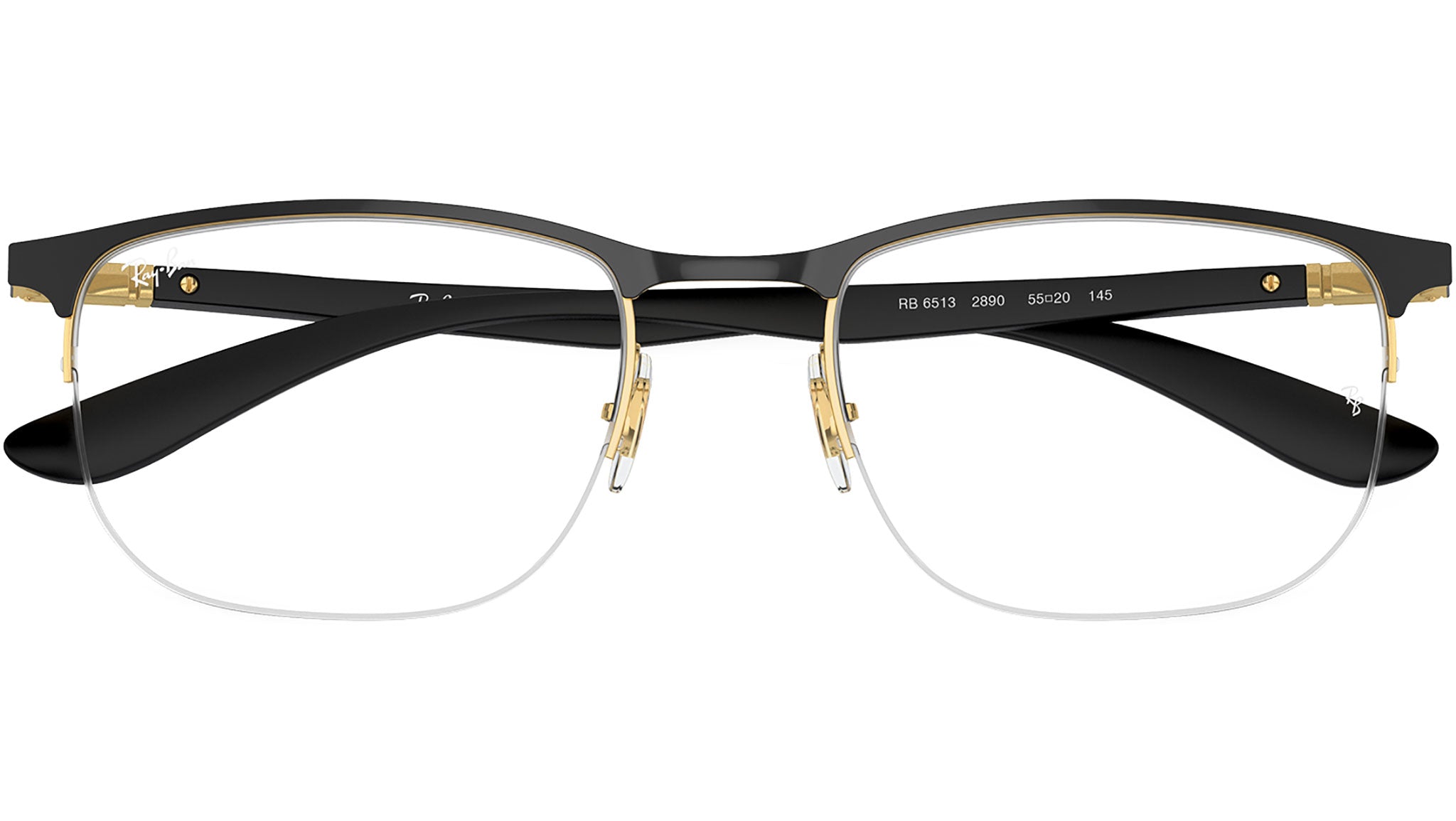 Occhiali da vista Ray-Ban RB6513 Optics RB6513 2890 unisex con montatura geometrica in metallo nero su oro e lenti demo. Naselli regolabili. Linea: Performance. Codice modello: 0RX6513. Codice colore: 2890. Rivenditore autorizzato Ray-Ban online. Gli occhiali vengono consegnati con custodia e accessori originali e sono coperti dalla garanzia ufficiale di 12 mesi del produttore.