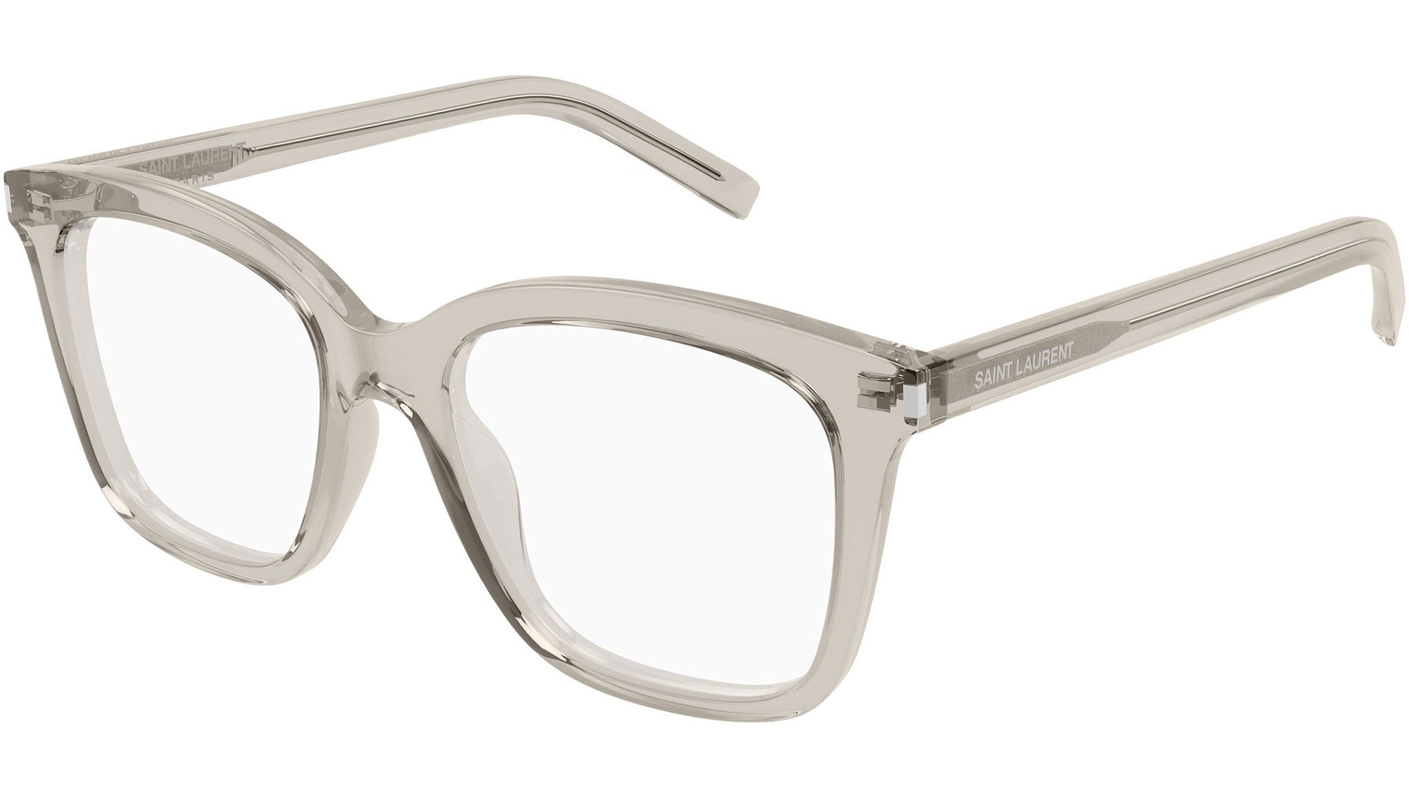 Occhiali da vista Saint Laurent SL 166 007 donna con montatura rettangolare in acetato beige trasparente lucido e lenti demo. Linea: Corner Angle. Codice modello: SL 166. Codice colore: 007. Made in Italy. Rivenditore autorizzato Saint Laurent online. Gli occhiali vengono consegnati con custodia e accessori originali e sono coperti dalla garanzia ufficiale di 12 mesi del produttore.