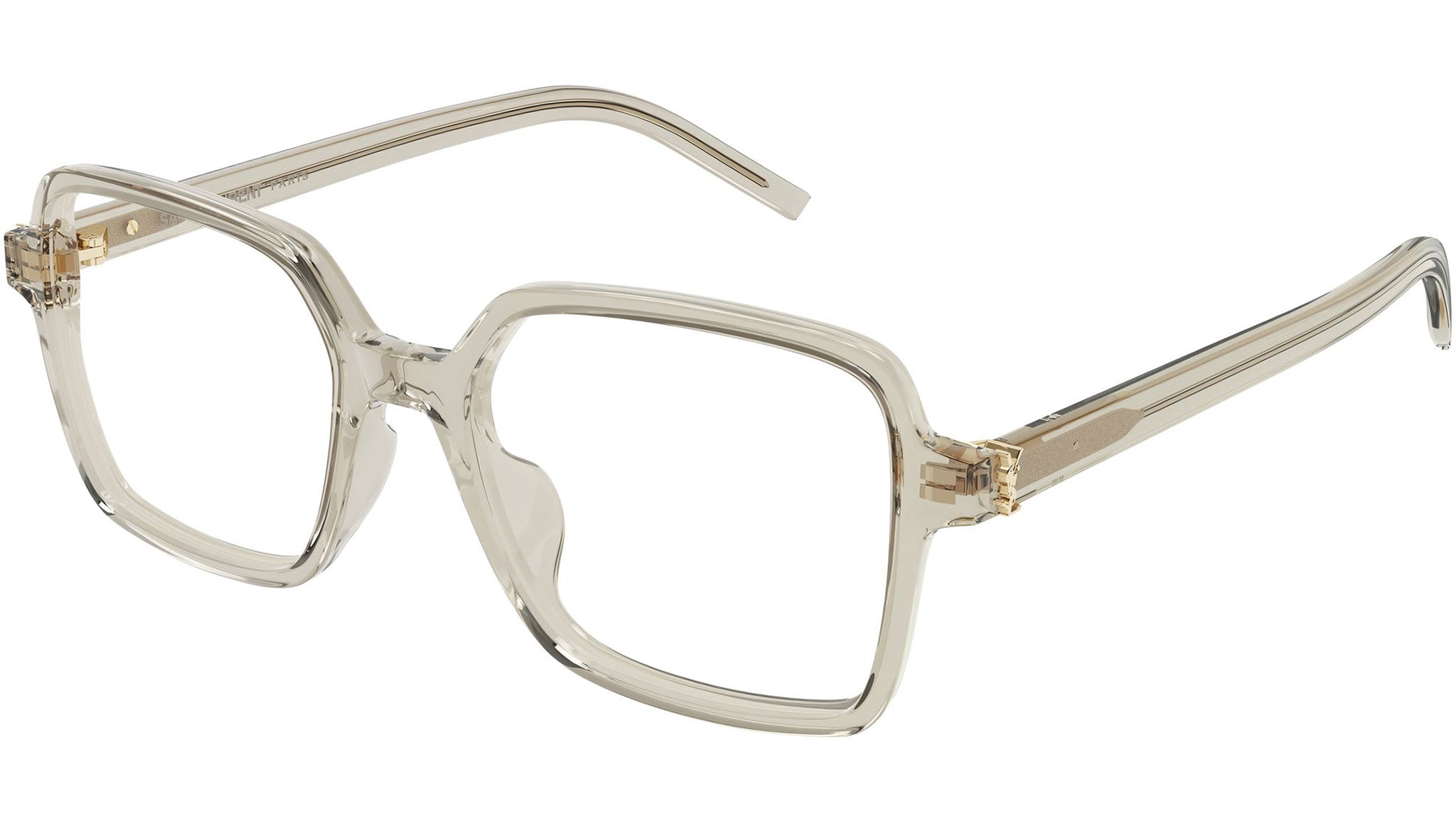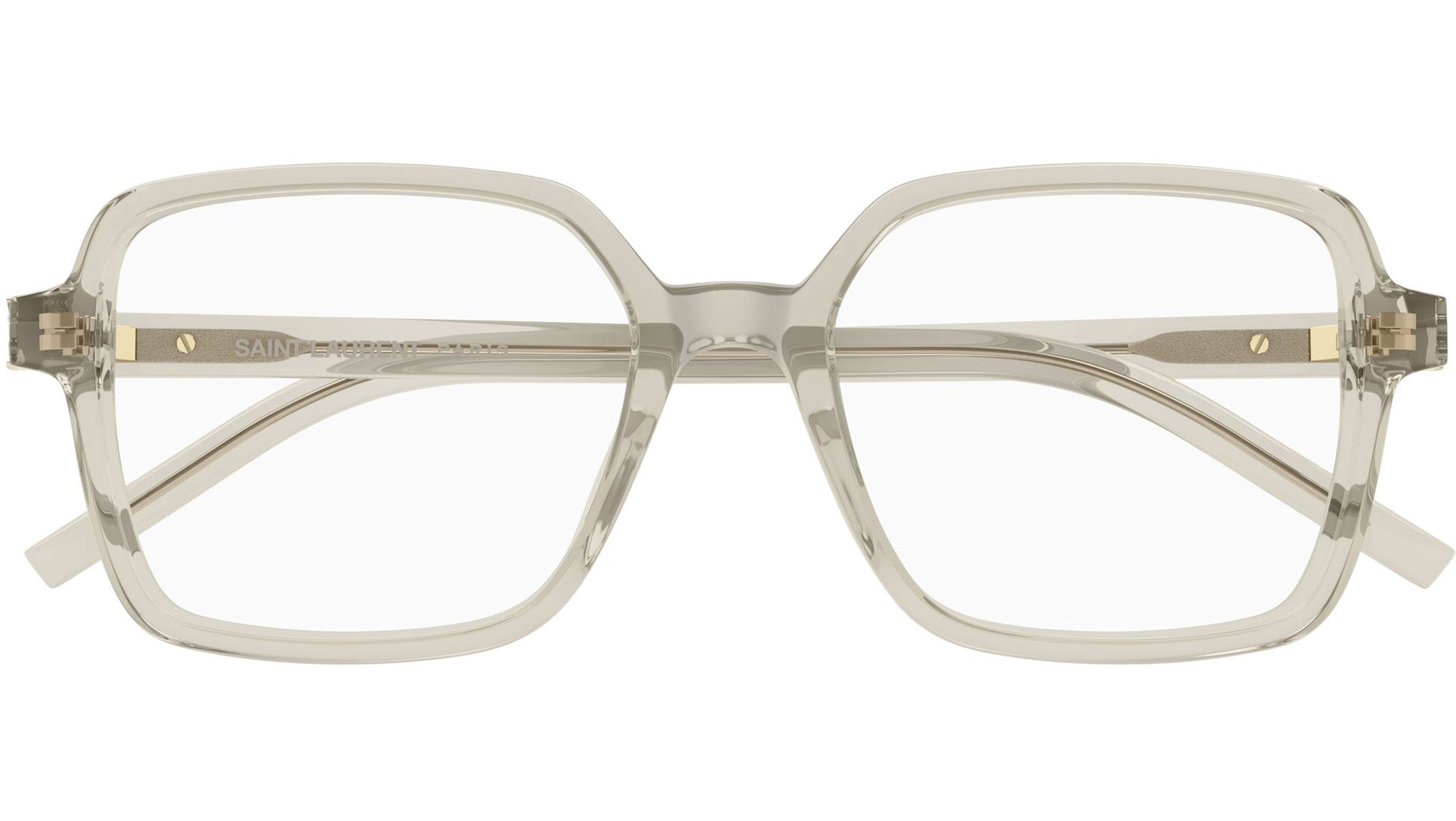 Occhiali da vista Saint Laurent SL M139 005 donna con montatura rettangolare in acetato riciclato beige trasparente lucido e lenti demo. Linea: Monogram. Codice modello: SL M139. Codice colore: 005. Made in Italy. Rivenditore autorizzato Saint Laurent online. Gli occhiali vengono consegnati con custodia e accessori originali e sono coperti dalla garanzia ufficiale di 12 mesi del produttore.